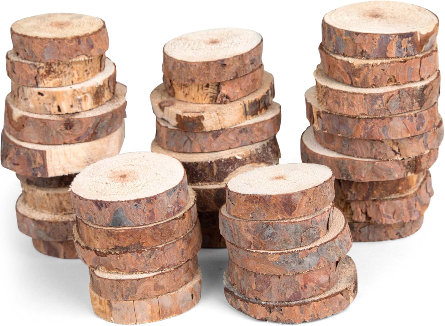- Preserved Natural Bark Edges: The bark on the edges of each disc is kept intact, adding an authentic rustic charm and natural contrast to the smoother interior face of the slice. This makes them ideal for rustic and woodland-themed projects.