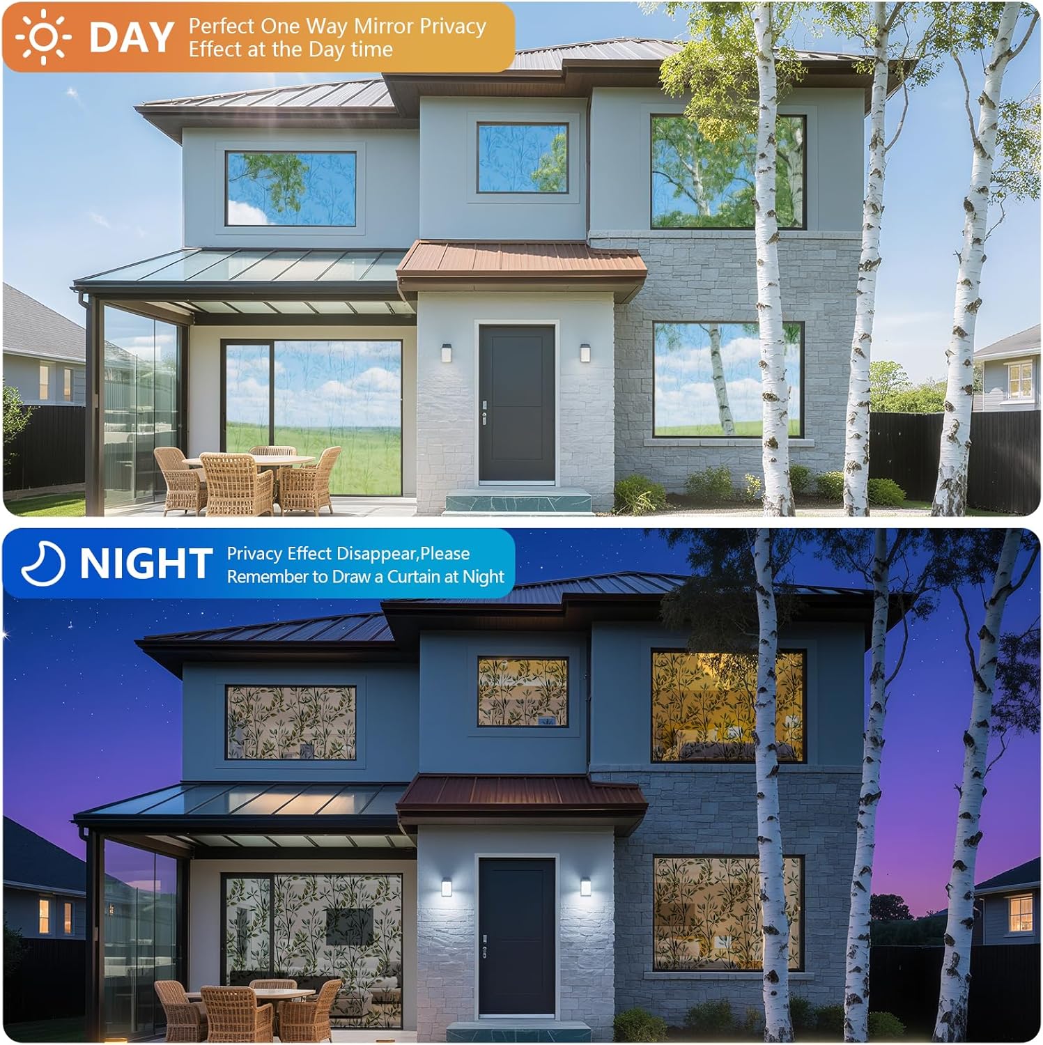 - Day and Night Privacy Protection: Provides excellent privacy during daytime through mirror-like reflection. At night, when indoor lighting is stronger, the mirror effect decreases; using curtains is recommended for full privacy protection.