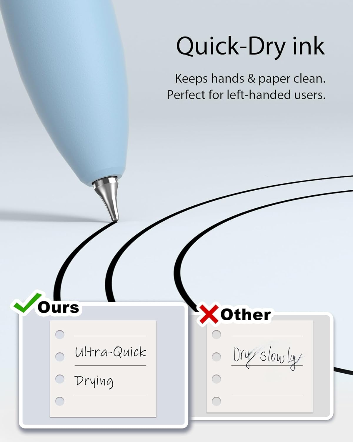 - Quick-Dry Long Lasting Ink:0.7mm black ink can slide effortlessly, dry immediately, & is not easily dirty. It has a high-capacity reservoir (up to 1300 meters), which is very suitable for left-handed & right-handed users.