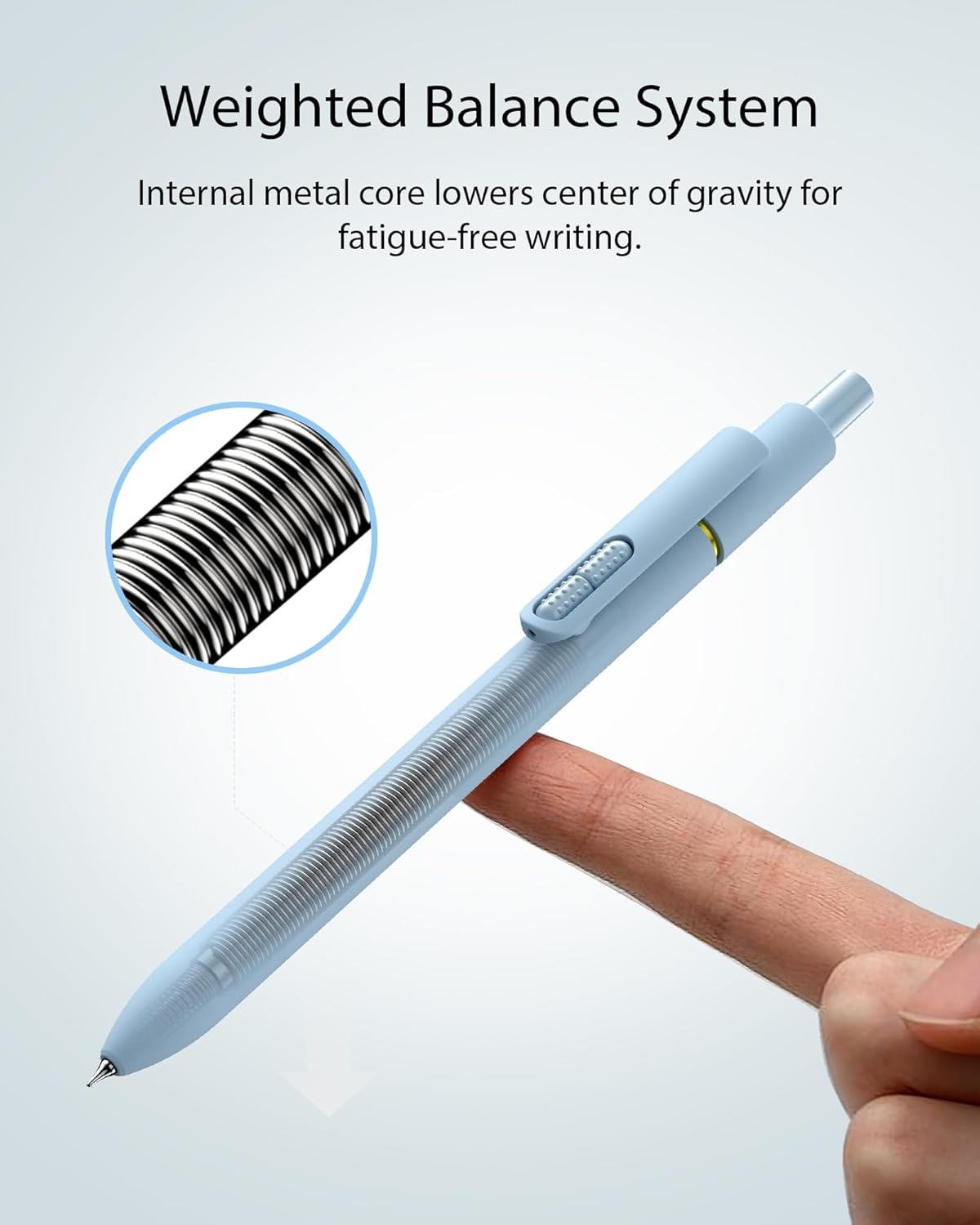 - Comfortable Non-Slip Grip:The ergonomic pen barrel has a soft rubberized coating for a comfortable, non-slip grip, so you won't get fatigued even after long hours of writing.