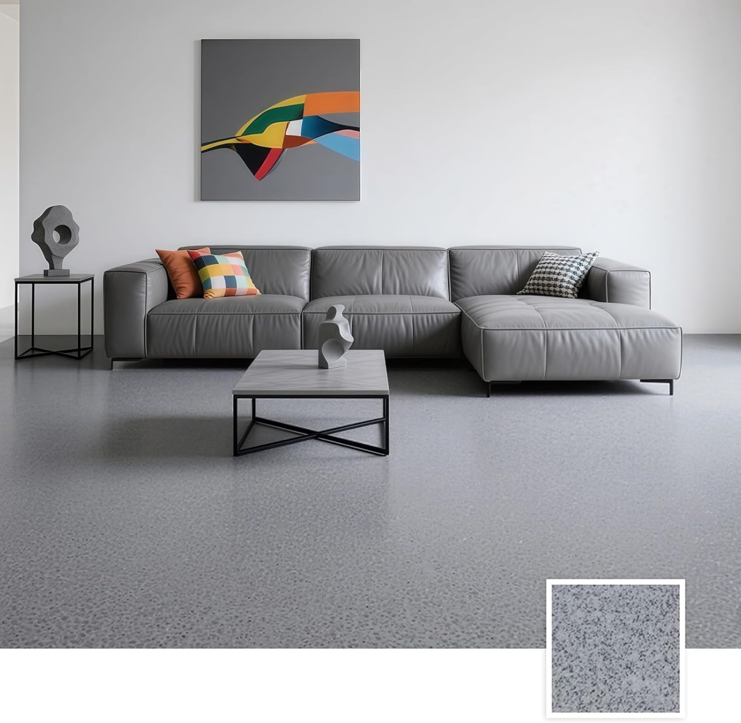 Epoxy Colored Sand Floor Paint, Epoxy Floor Paint High Gloss Marble Effect Coating for Indoor and Outdoor, Wear-resistant and non-slip Self-leveling Coating Light Gray 35OZ(1KG)