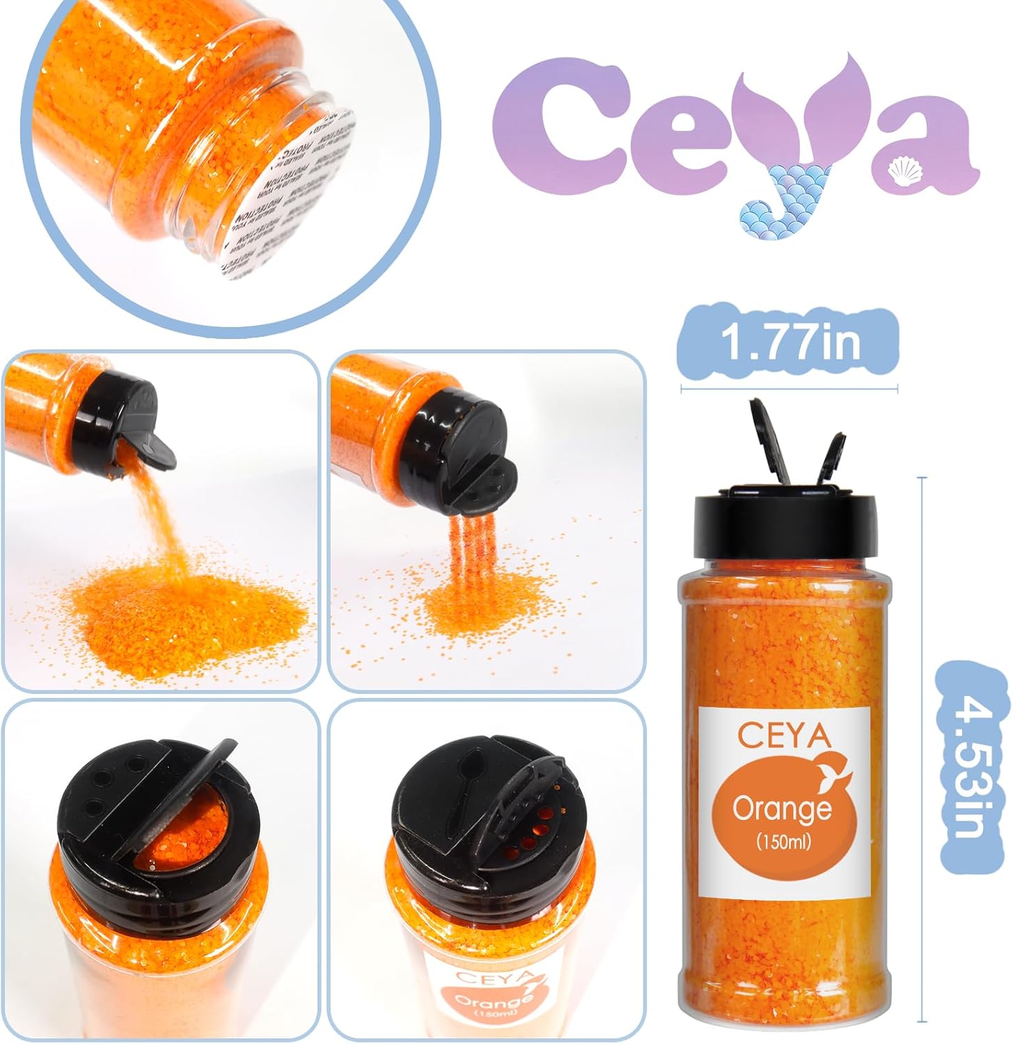- 🎃【Safe & Convenient】Ceya glitter for crafts are made of high-quality materials, non-toxic, odorless, and not easy to fade. Our craft glitter for school with the unique bottle cap design, the double opening and different powder pouring methods allow you to easily control the flow and usage of the sparkly chunky glitter, convenient for you to use in classroom, parade, parties, carnivals, nightclub, performances, stages, concerts, etc.