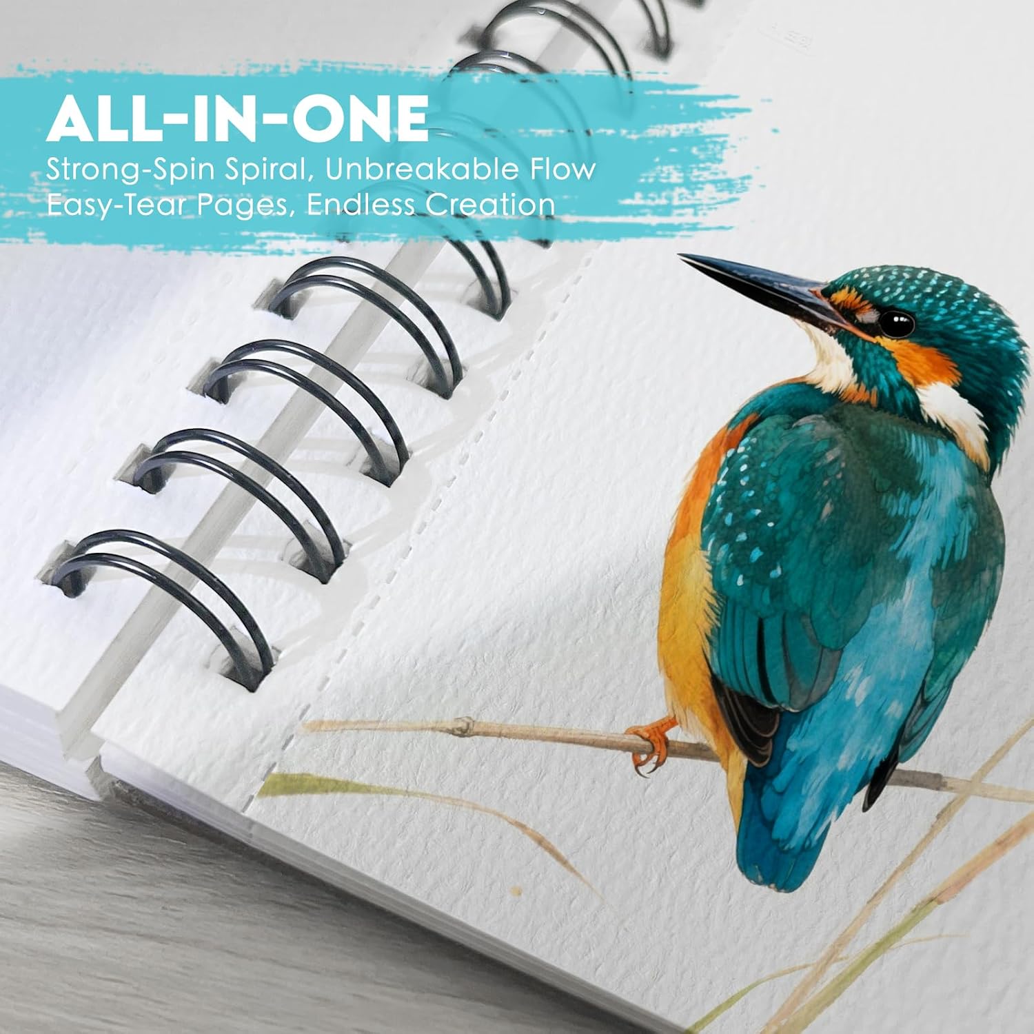 - All-in-One Watercolor Sketchbook Journal β Spiral-bound lay-flat design with rust-resistant coil; reinforced covers protect pages indoors or on-the-go.