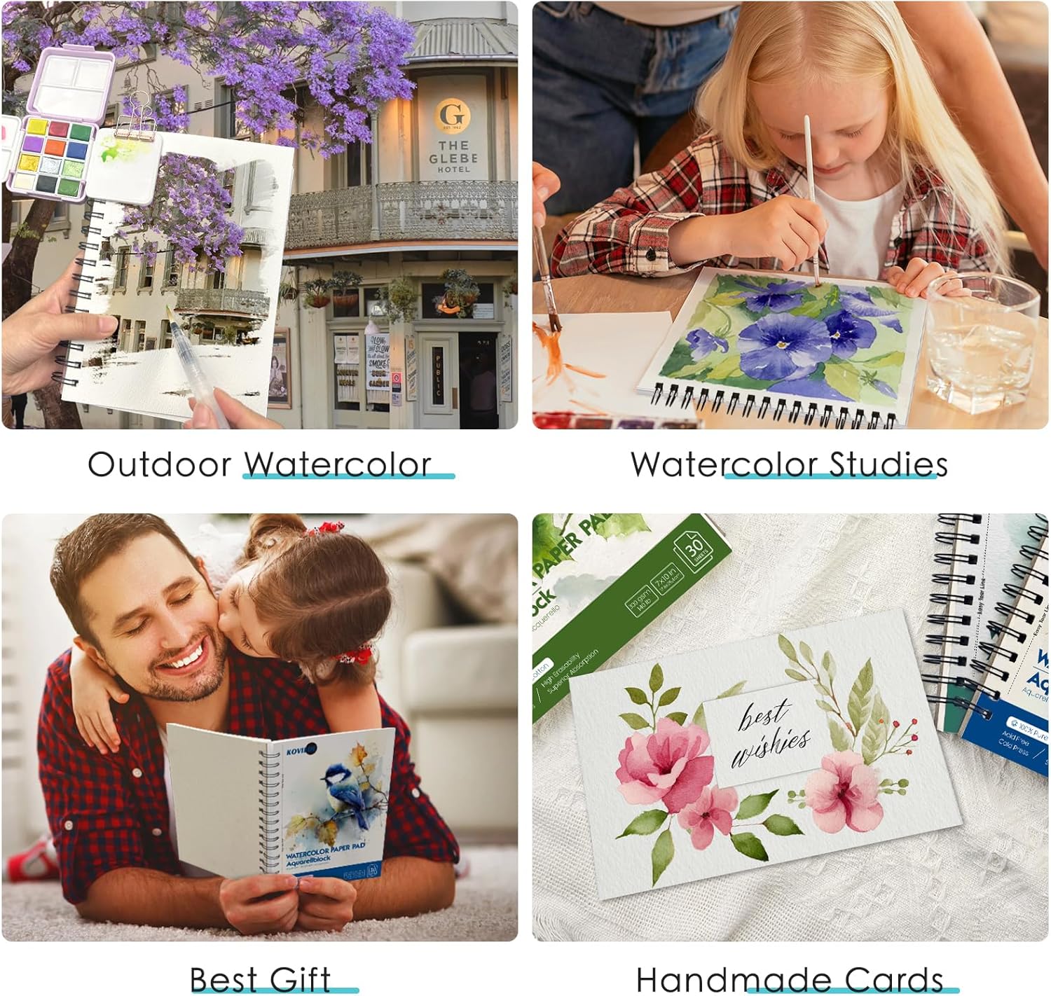 KOVIEDE 100% Cotton Watercolor Paper Pad - 30 Sheets 7"x10" Spiral Bound 140lb/300gsm Cold Press Watercolor Sketchbook, Artist Quality Art Journal Supplies for Adults, Kids & Beginners