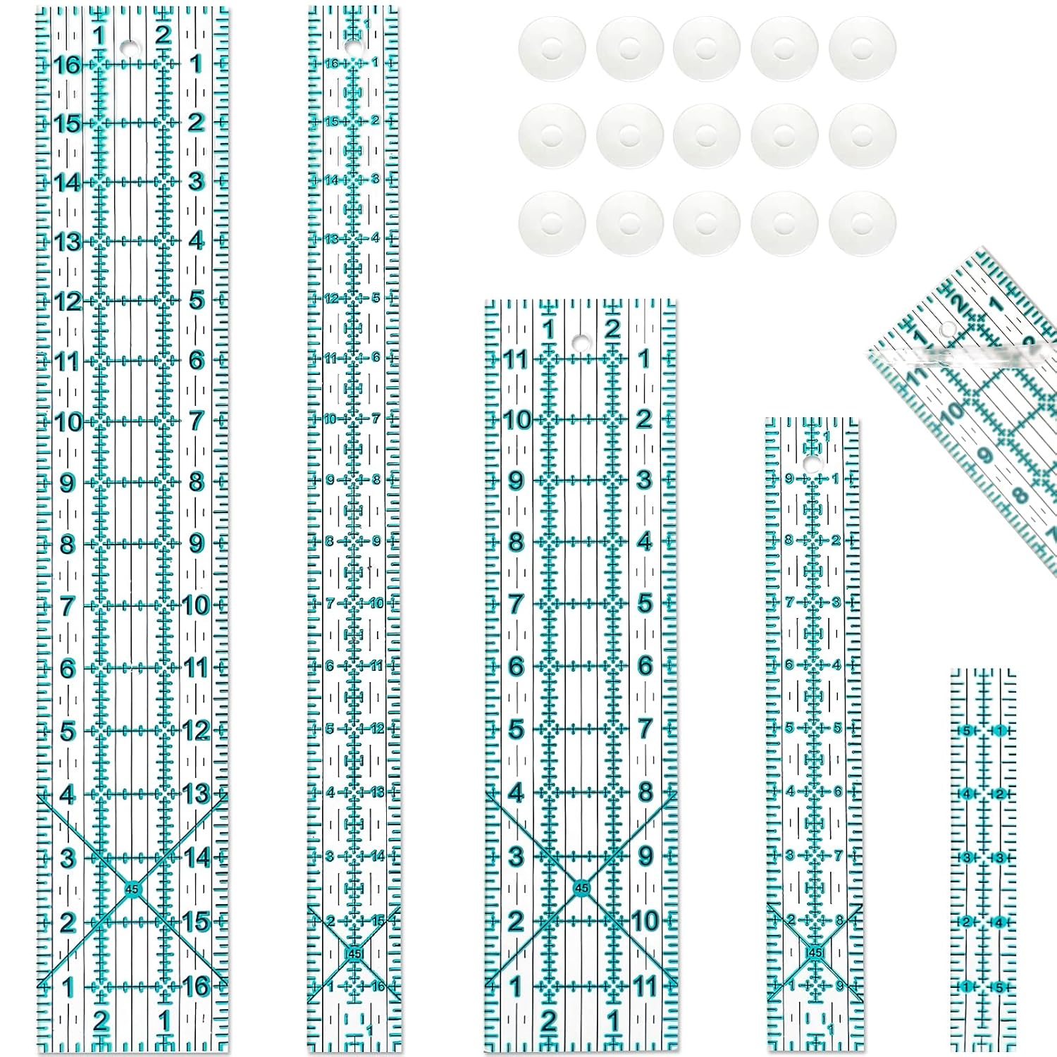 Quilting Rulers, Sewing Ruler, Acrylic Ruler for Sewing and Quilting,Cutting Ruler with Non-Slip Rings (3"x17",1.5"x17",3"x12",1.5"x10",1"x6") (Blue)