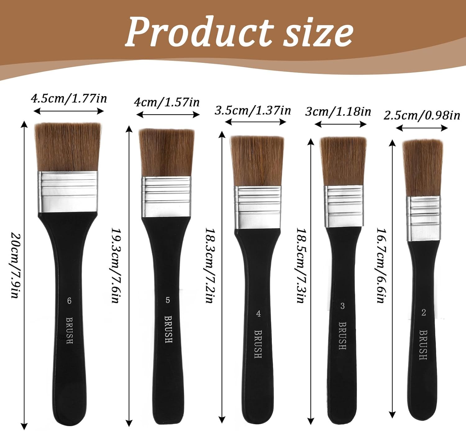 - 【Professional Size Range】You will receive 5 artist paint brushes (No.2 to No.6) covering 0.98"-1.77" widths. Graduated sizing enables everything from detailed lines to broad washes, making these art brushes versatile for canvas gesso, oil glazing, or watercolor layering. Ideal for controlled coverage in large-scale projects.
