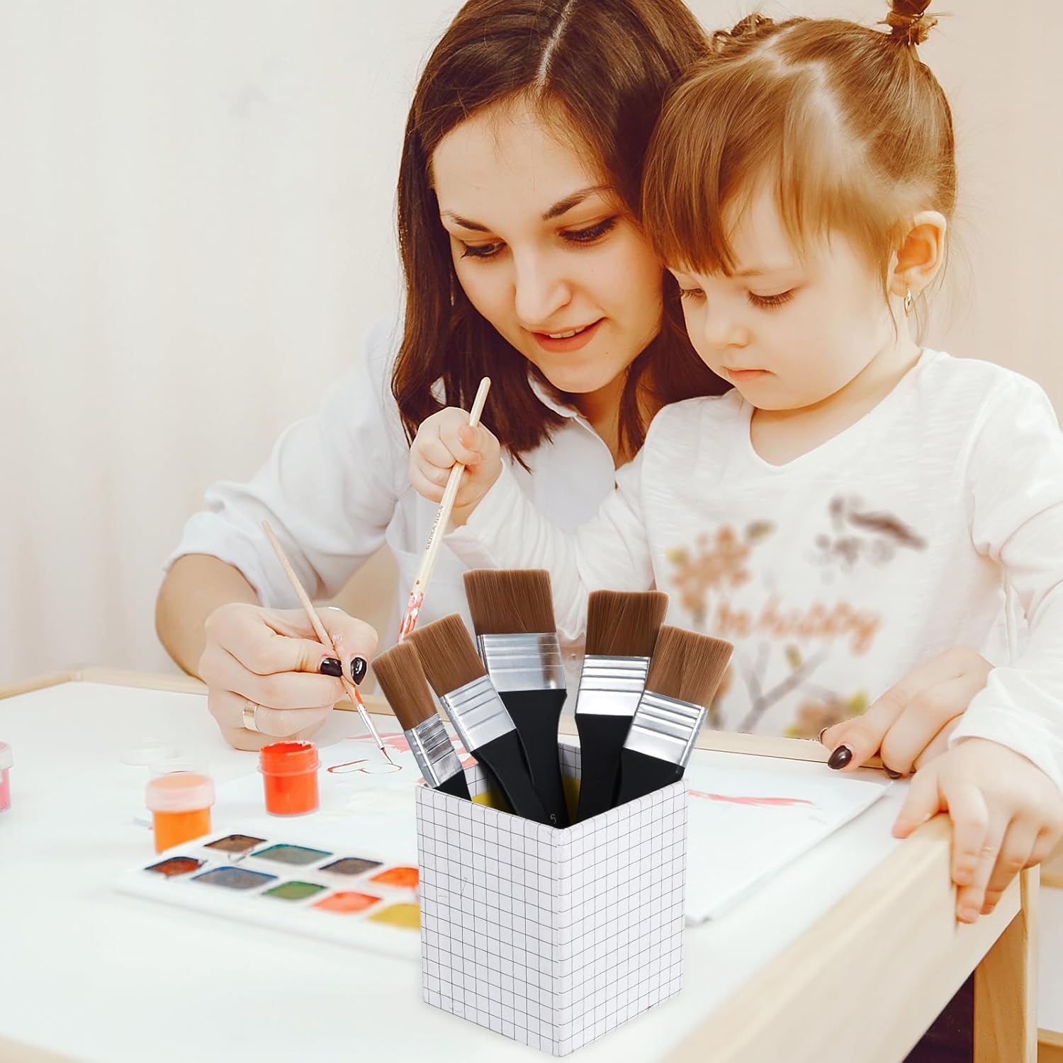 - 【Premium Material】These acrylic paint brushes feature durable nylon bristles and wood handles - reliable and long-lasting. The soft yet strong bristles are safe and user-friendly, maintaining their tough, upright structure without fading or shedding.