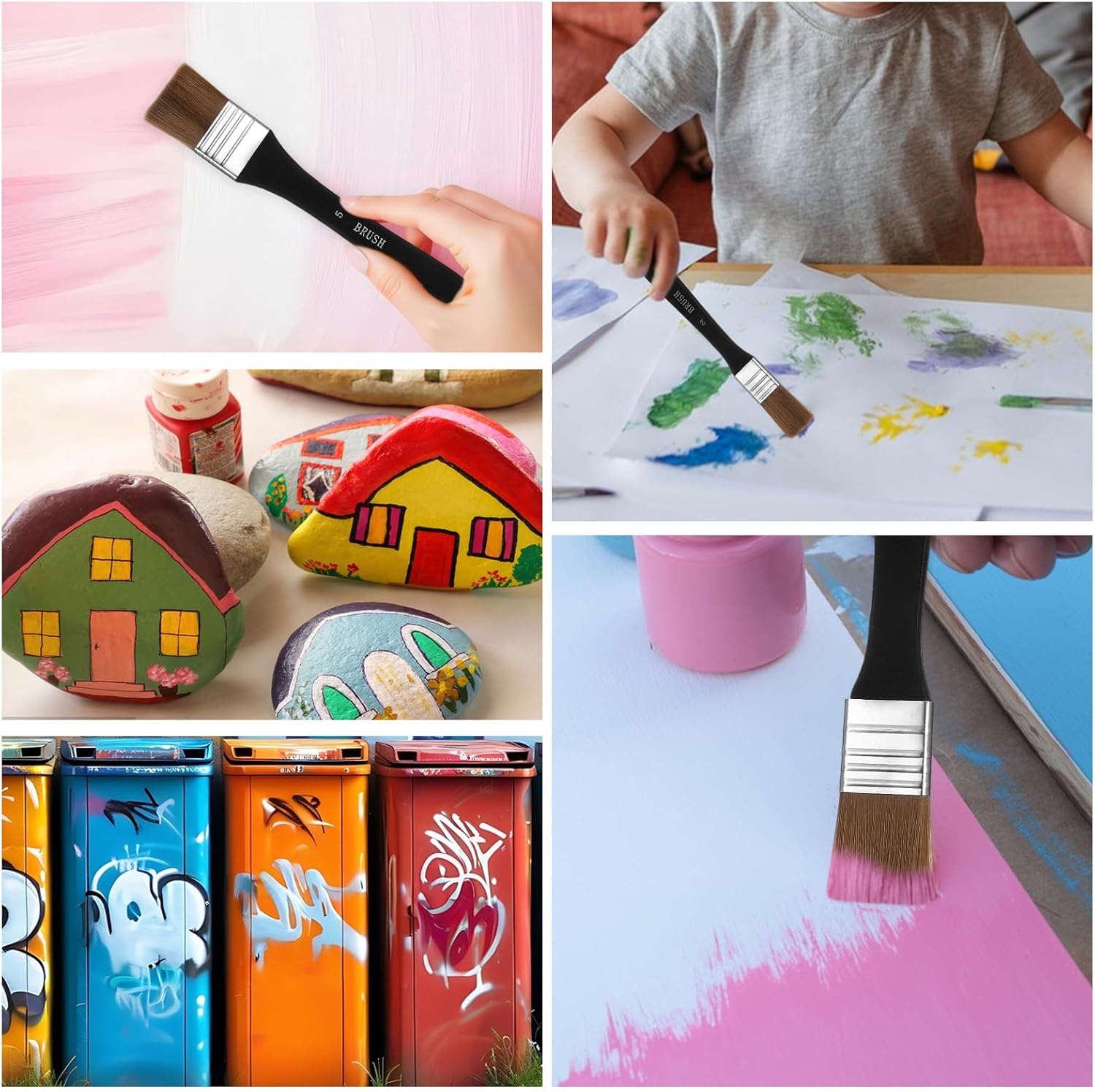 - 【Easy Maintenance】Clean acrylic paint brushes immediately after use. Both wide and stain brushes are easy to maintain - simply rinse with warm soapy water after each use to keep them in optimal condition. Air-dry horizontally to preserve ferrule adhesion, and avoid prolonged soaking to extend their lifespan.
