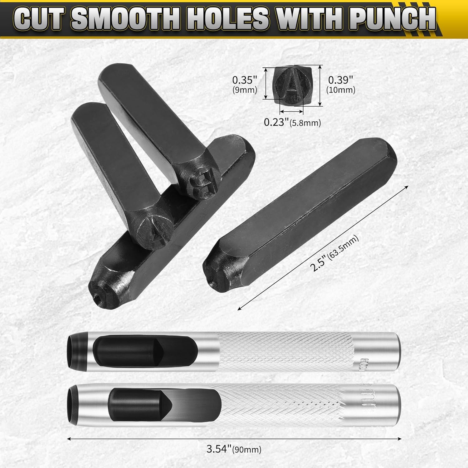 - 【Complete Metal Stamping Tool Set】 This WORKBLESS stamping set includes 36 stamping dies: 26 uppercase letters (A-Z), 9 numbers (0-8), and one “&” symbol. Each die measures 5/16 inch (8 mm).