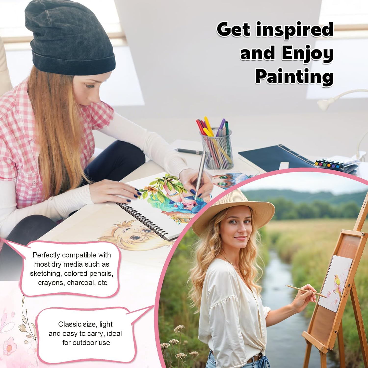 - 【Dry Media Mastery】68lb sketchbook for drawing and painting, can handle more than 12 tools: colored pencils, crayons, gel pens, and more. Tested, the textured surface enhances pigment adhesion compared to standard books - perfect for detailed illustrations or quick sketches