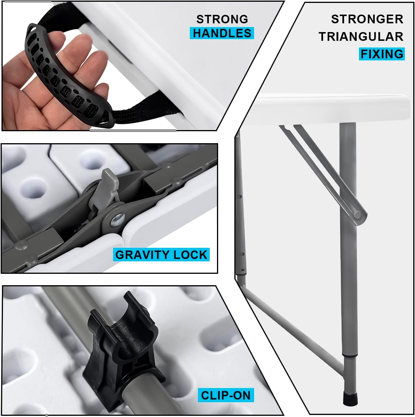- Strong Support - Powder-Coated Steel Legs And Gravity Locks Help To Completely Fix The Table At Any Time And Any Place. In Addition, Our Table Legs Are Also Equipped With Non-Slip Foot Covers, Which Can Not Only Protect Your Floor But Also Prevent Slipping.