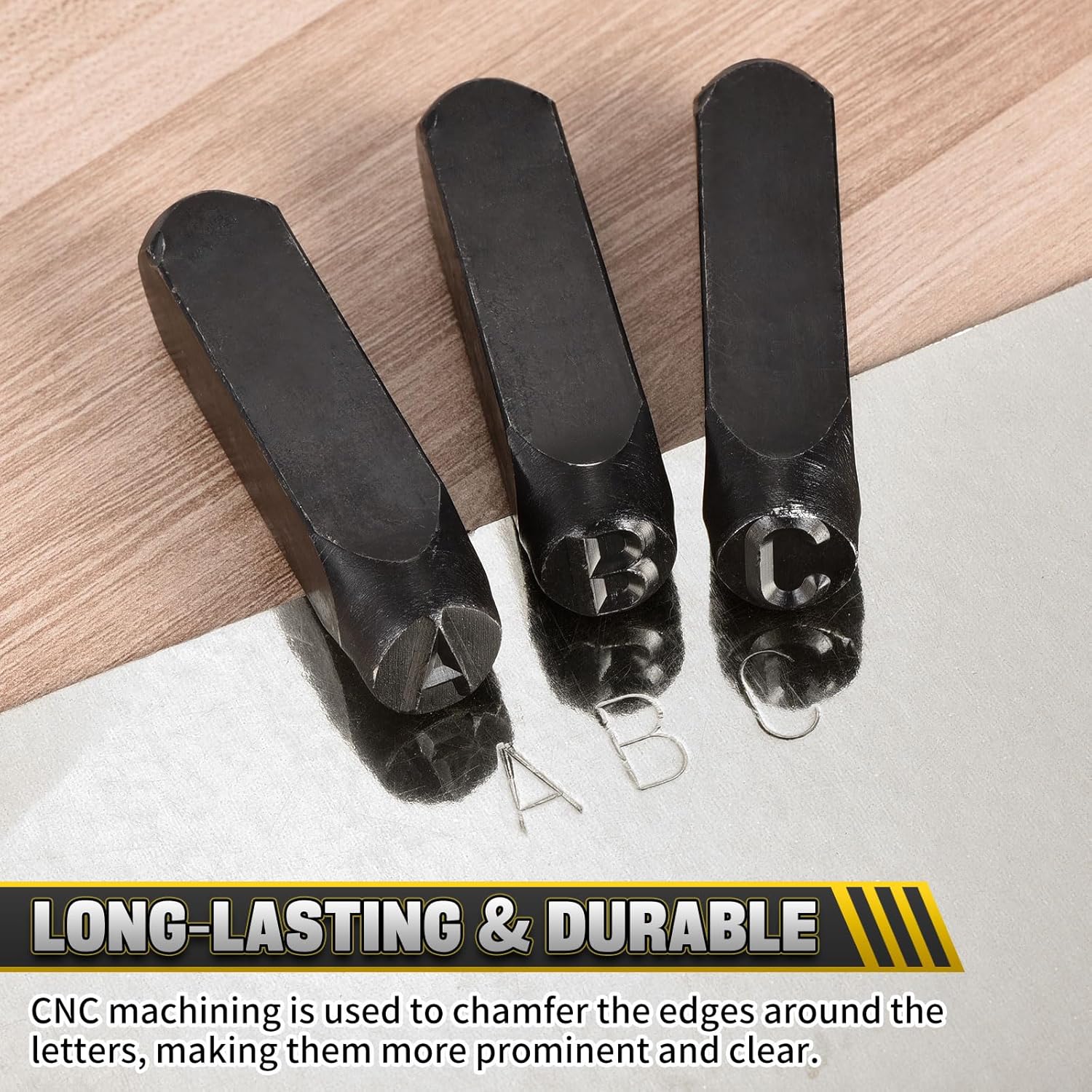 - 【Complete Metal Stamping Tool Set】 This WORKBLESS stamping set includes 36 stamping dies: 26 uppercase letters (A-Z), 9 numbers (0-8), and one “&” symbol. Each die measures 1/2 inch (12.5 mm).