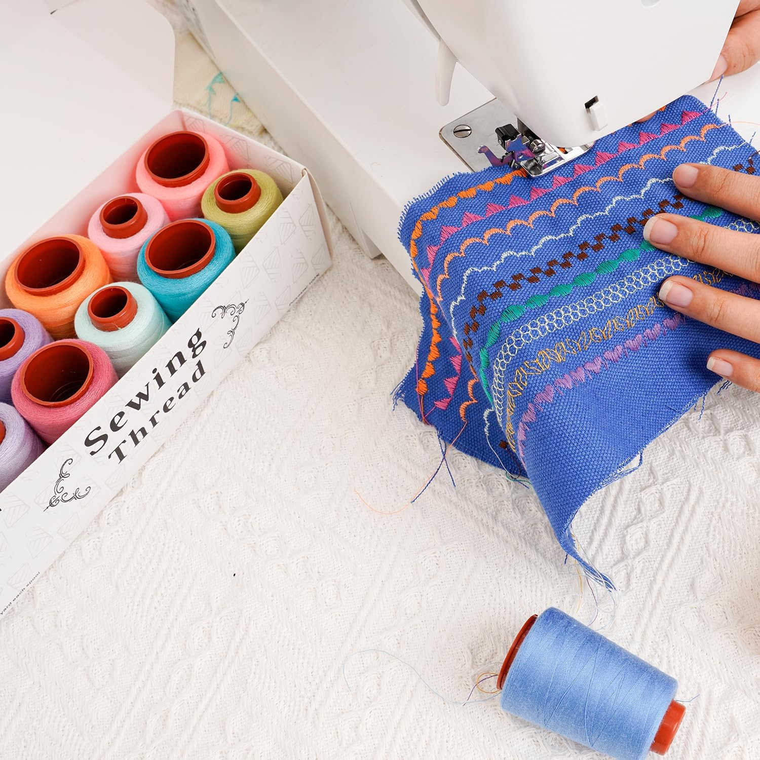 - 12-Color Sewing Thread Set – This sewing thread assortment features 12 vibrant spools (800 yards each), grouped by color family. Perfect for matching, contrasting, or creative stitching combinations