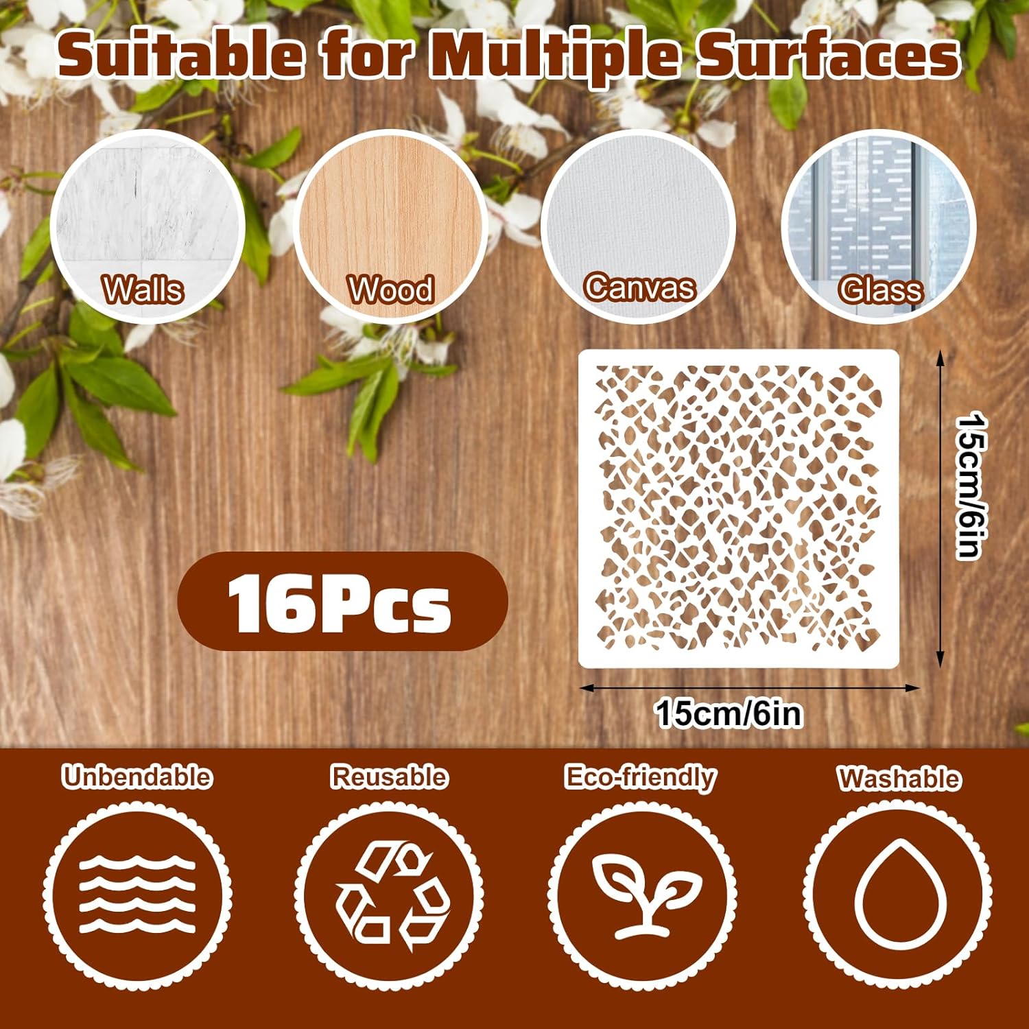 16Pcs Layering Stencils for Painting, 6"x6" Paint Stencils Mixed Texture Bubble Dot Waves Stone Crackle Splatter Geometric Stencil, Stencil for Painting on Wood DIY Art Crafts
