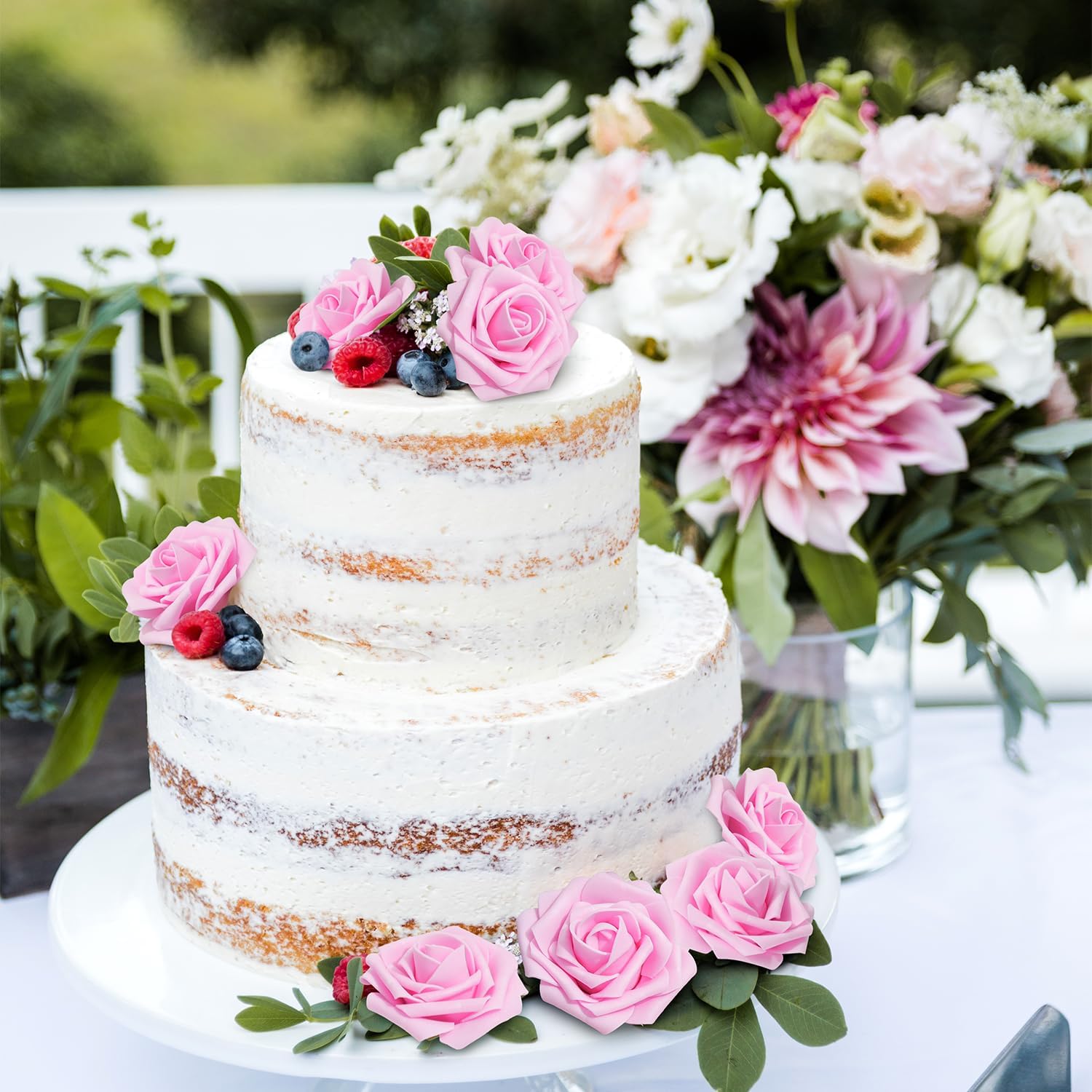 Artificial Flowers Foam Fake Roses 25pcs Pink Roses with Stems for Home Decor DIY Wedding Bouquets Party Bridal Shower Centerpieces Faux Flower Arrangements Tables Decorations