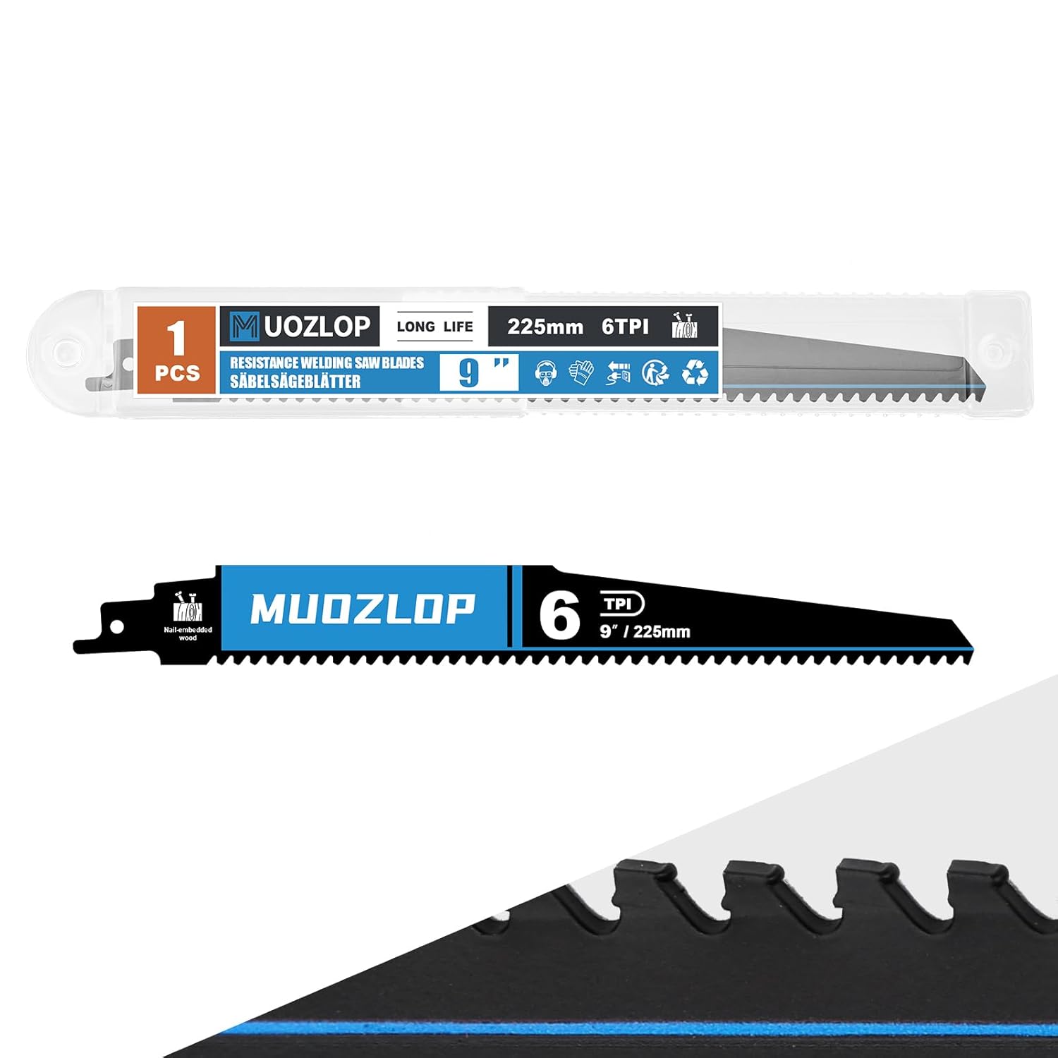 1 Pack 9 inch Reciprocating Saw Blades Set,6 TPI High Carbon Saw Blades for Wood with Nails ,Saw Blades with Organizer Case (1, 6T/9inch)