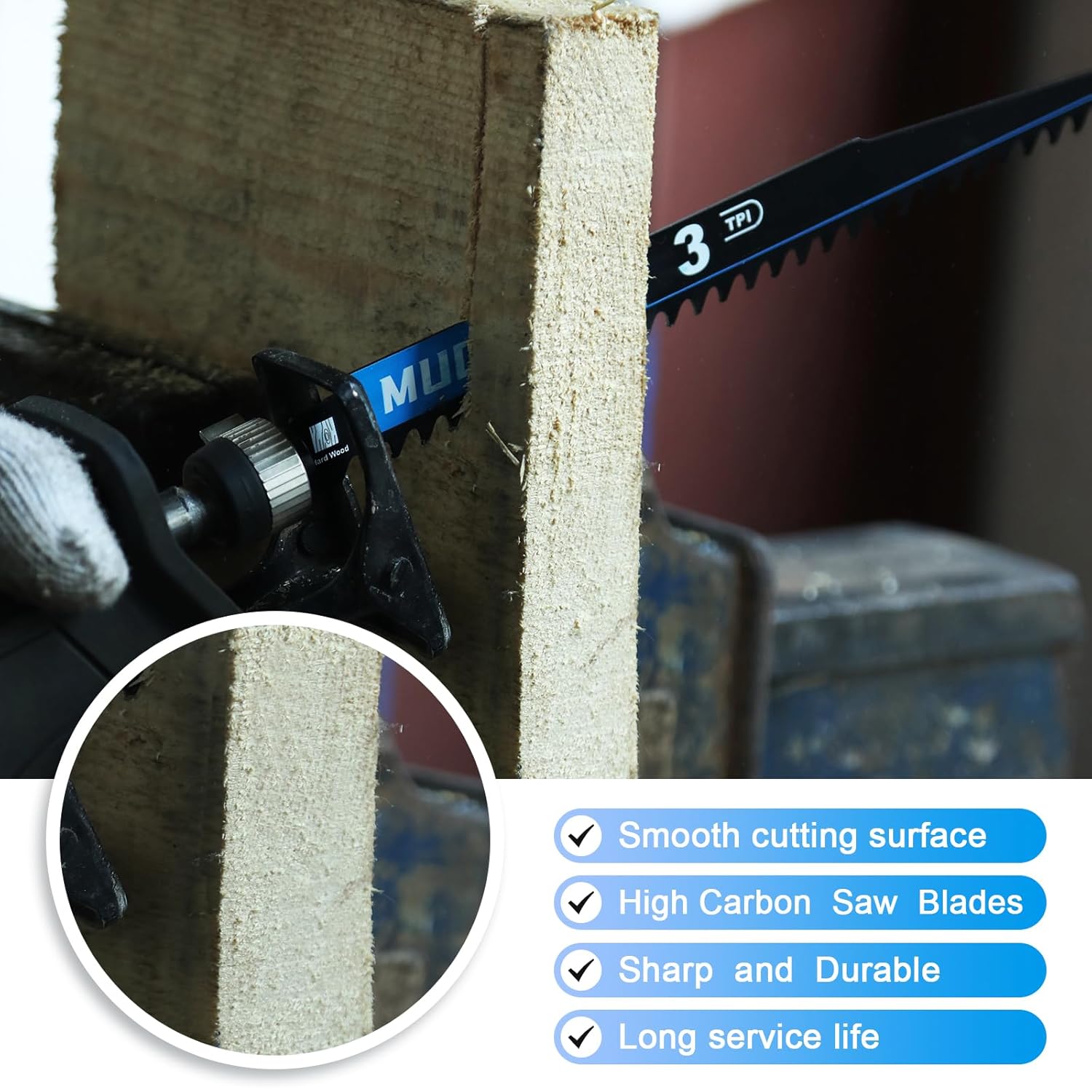 10 Pack 6 inch Reciprocating Saw Blades Set, 3 TPI High Carbon Saw Blades for Wood Cutting ,Saw Blades with Organizer Case (10, 3T/6inch)
