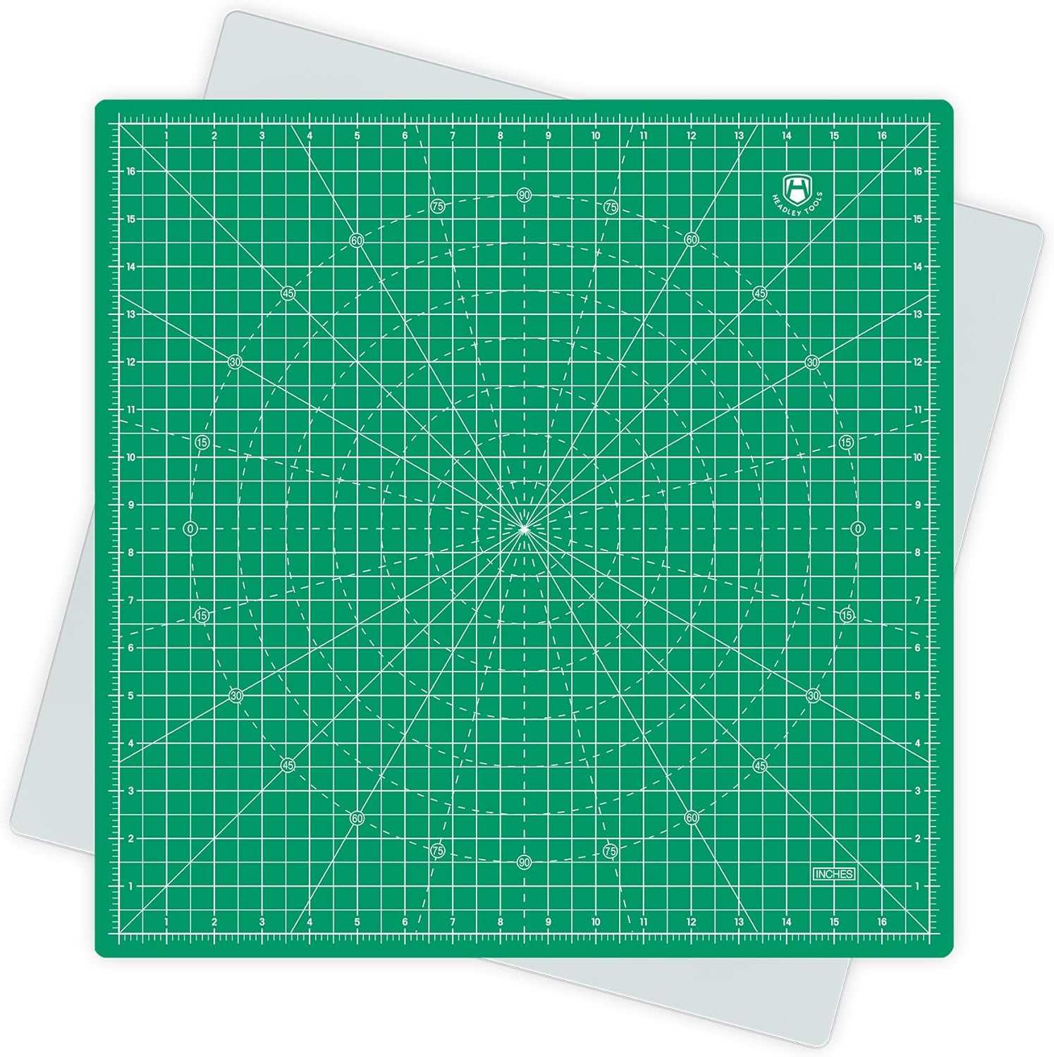 Headley Tools 17"x17" Rotating Cutting Mat, Self Healing Mat with 360-Degree Rotation & Anti-Slip Base, Sewing Board Cutting Mat Perfect for Fabric Quilting Leather Hobby Project, Green