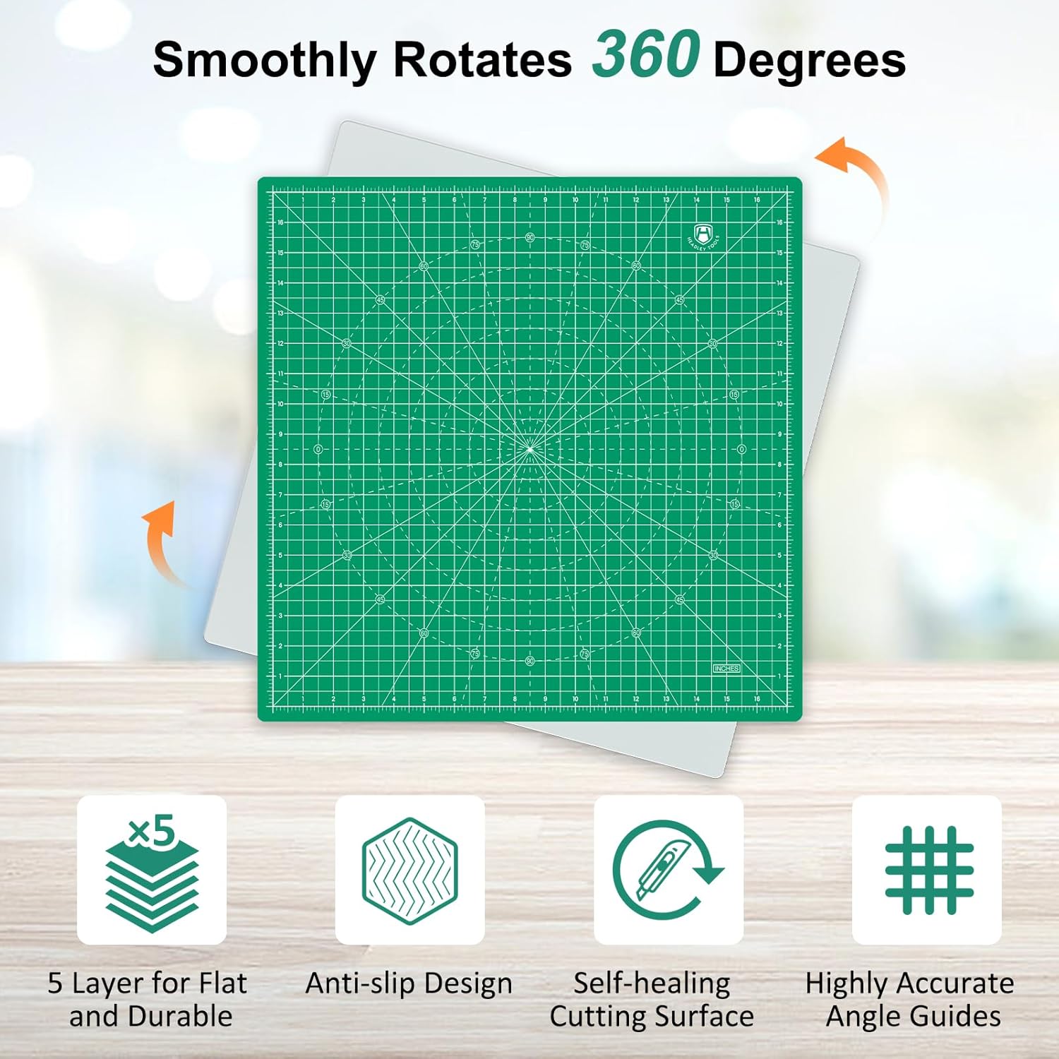 - [Versatile Uses] ♡Rotating cutting mats for quilting: As essential quilting supplies, our high-quality rotary cutting mat is a must-have for every quilter—whether you're just starting out or a seasoned pro. Perfect for a wide range of creative activities, including crafting, sewing, quilting, fabric cutting, scrapbooking, and more.