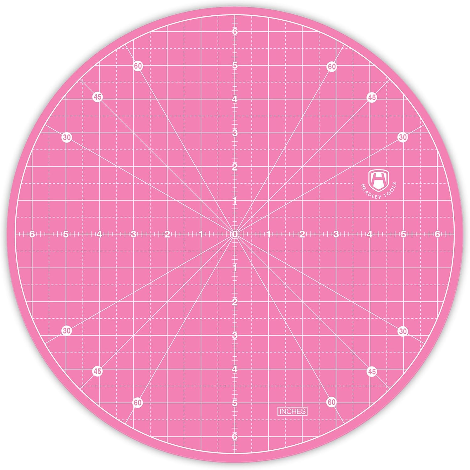 Headley Tools 13"x13" Round Rotating Cutting Mat, Self Healing Mat with 360-Degree Rotation & Anti-Slip Base, Sewing Board Cutting Mat Perfect for Fabric Quilting Leather Hobby Project, Pink