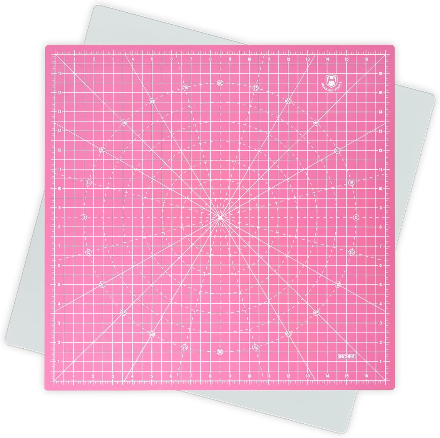 Headley Tools 17"x17" Rotating Cutting Mat, Self Healing Mat with 360-Degree Rotation & Anti-Slip Base, Sewing Board Cutting Mat Perfect for Fabric Quilting Leather Hobby Project, Pink