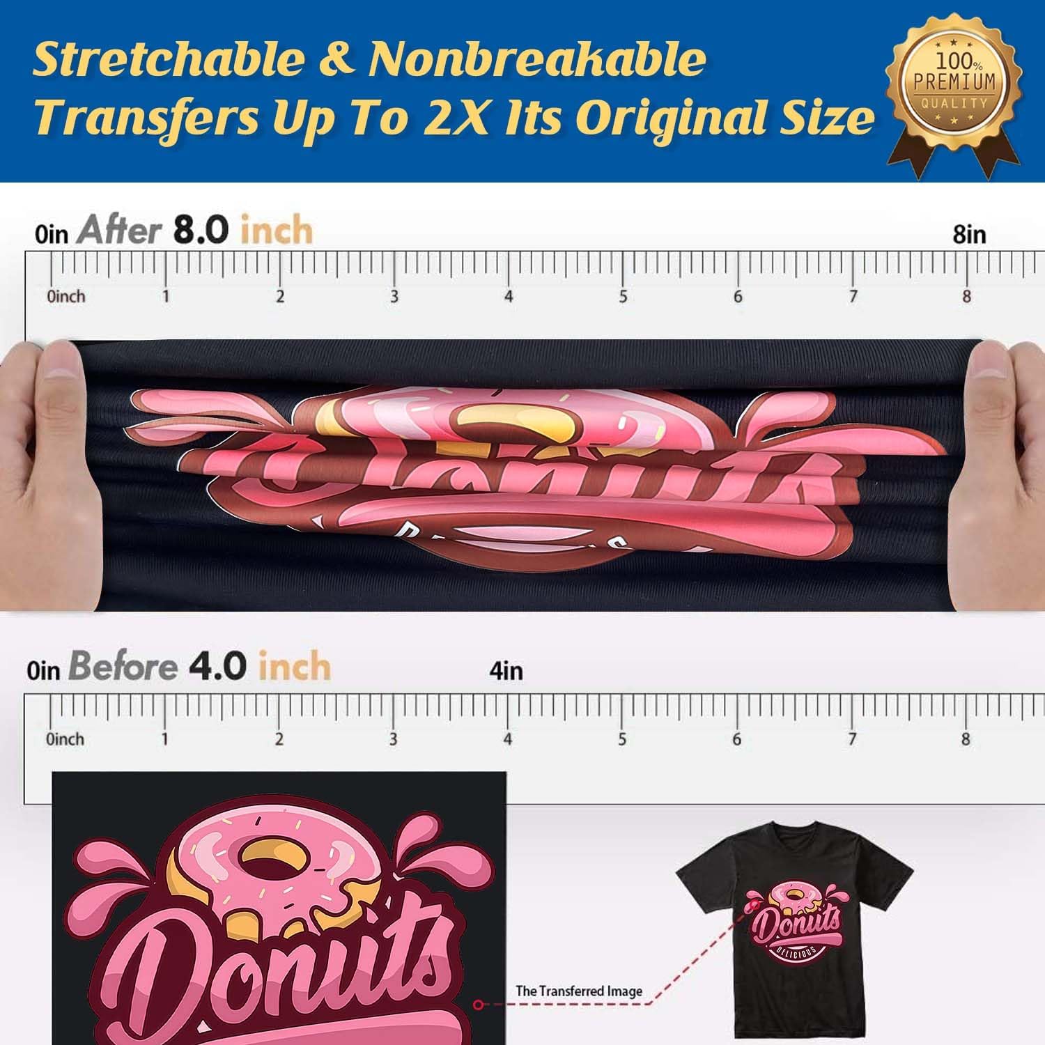- 💕TRU-TRANSFER PAPER: Pack of 100 sheets Dark Transfer Paper and 10 sheets reusable Teflon Paper. Our dark iron-on transfer paper is produced with waterborne polyurethane by AI edge technology, allowing transfers stretchable and non-breakable up to 2X its original size, especially easy to cut with scissors or die cutting machine. Our advanced and unique formula guarantees the transfers vibrant, soft and machine washable.