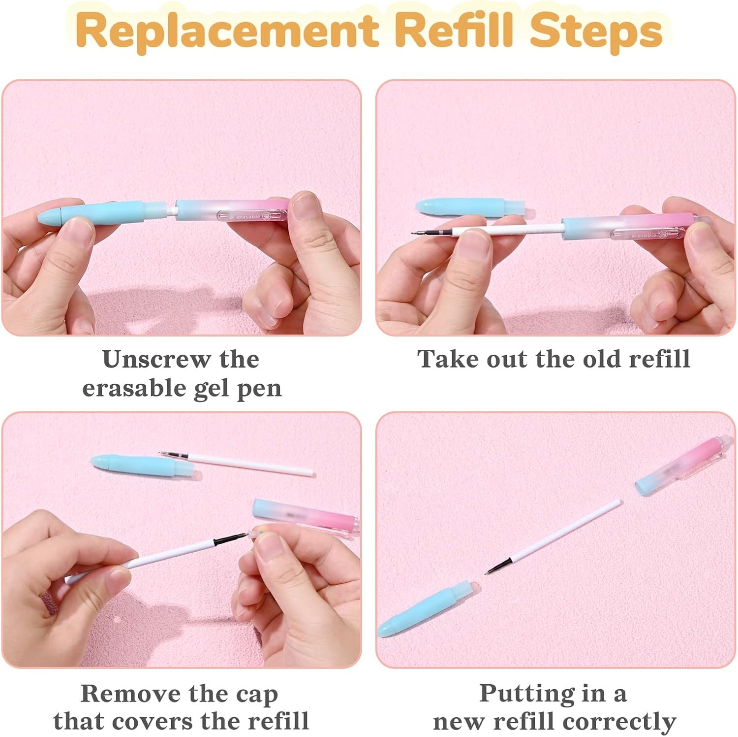 - You Will Received: This set includes 4 gradient-colored erasable pens and 10 replacement refills, meeting your long-term usage needs