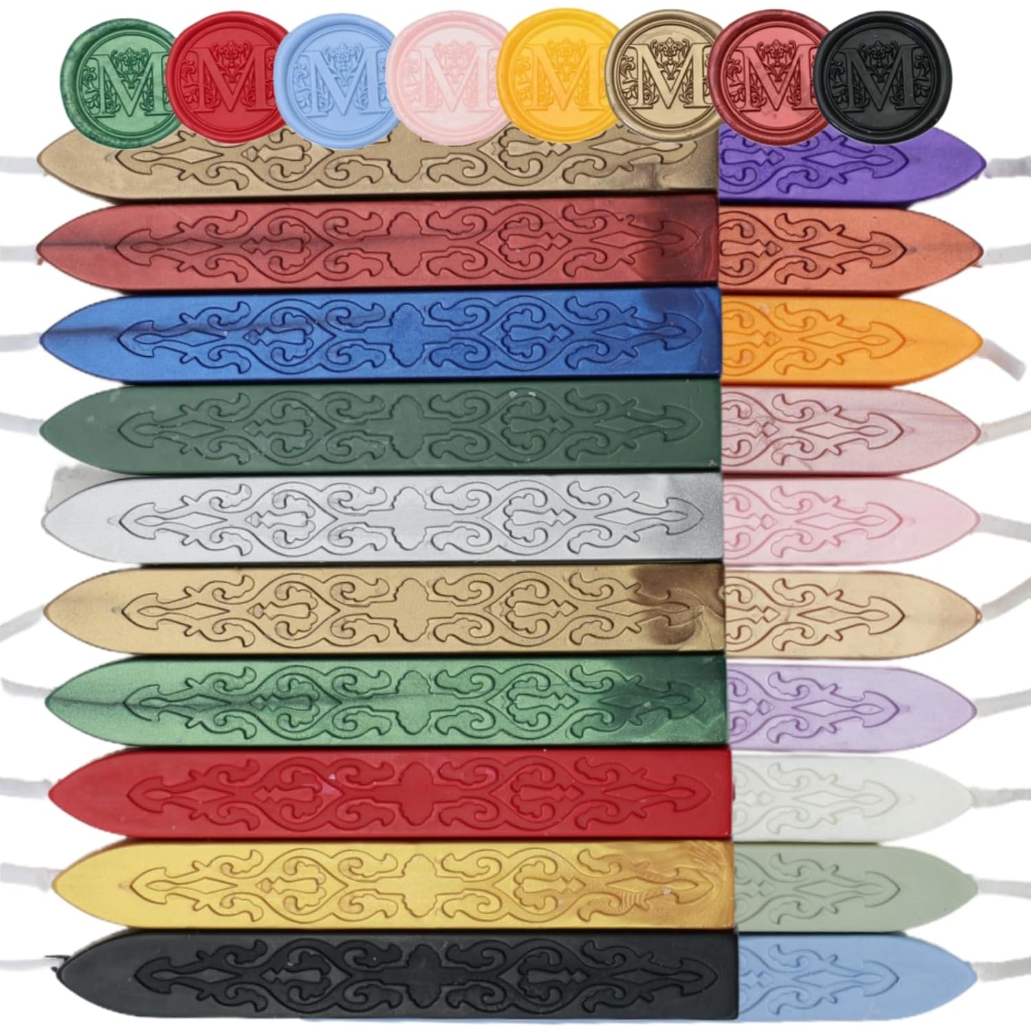 20Pcs Wax Sealing Sticks with Wicks, Assorted Colors Wax Seal Sticks Great for Letter Sealwax Stamp, Mixed Color Waxsealsticks, Wedding Invitations, Decoration (20)