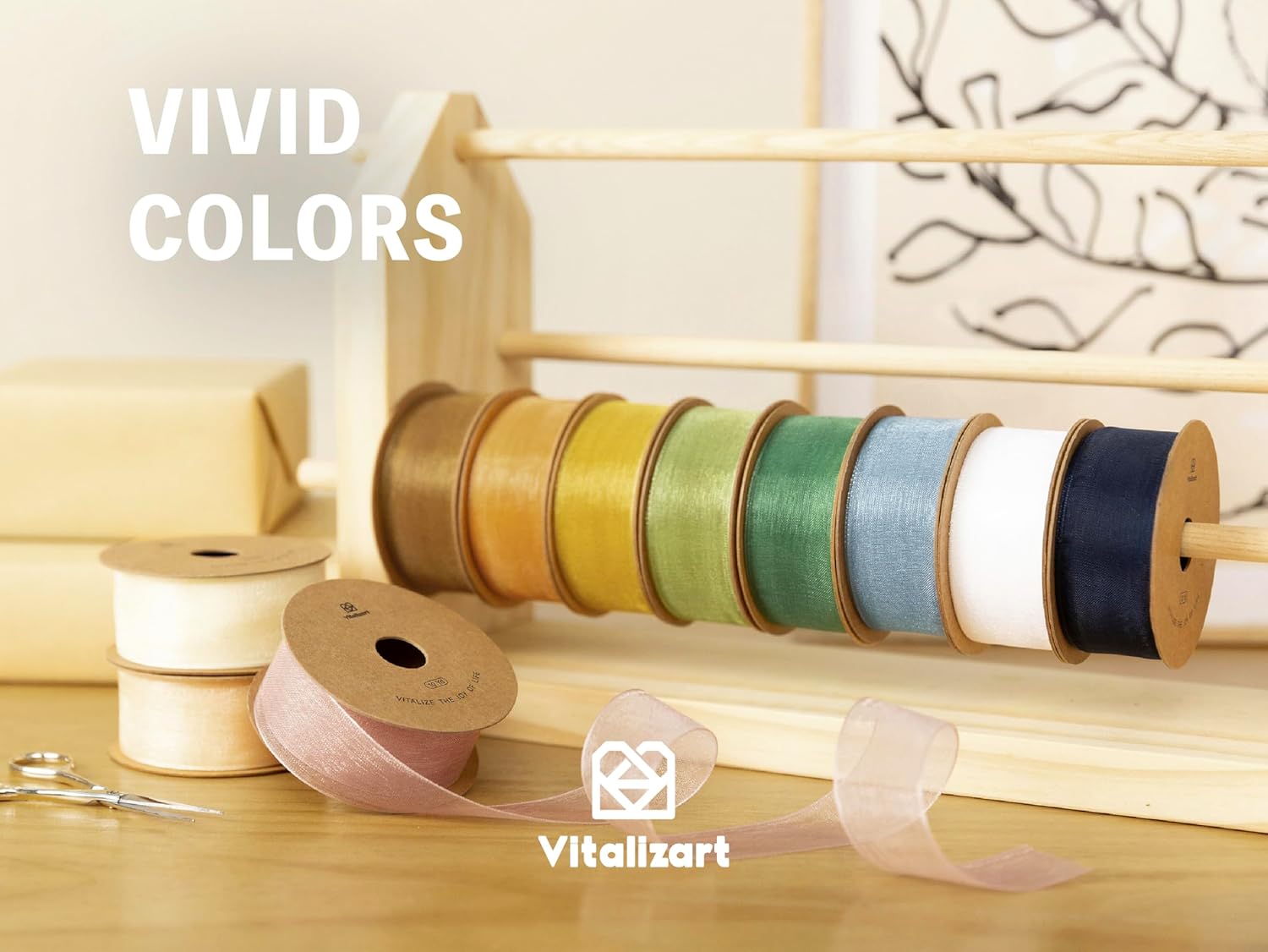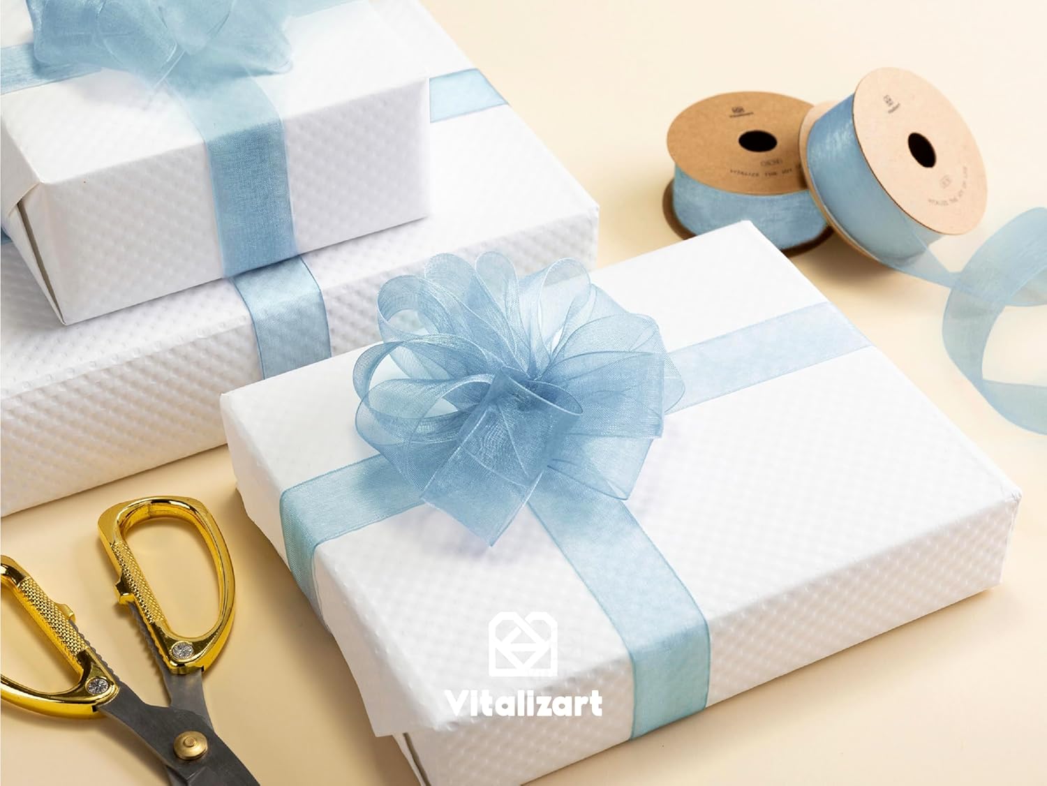 Vitalizart Dusty Blue Ribbon Organza Sheer Ribbon 1 inch x 30Yd Handmade Fabric Ribbons for Gift Wrapping Christmas Tree Crafts Bows Wedding Invitations Wreaths Wrap