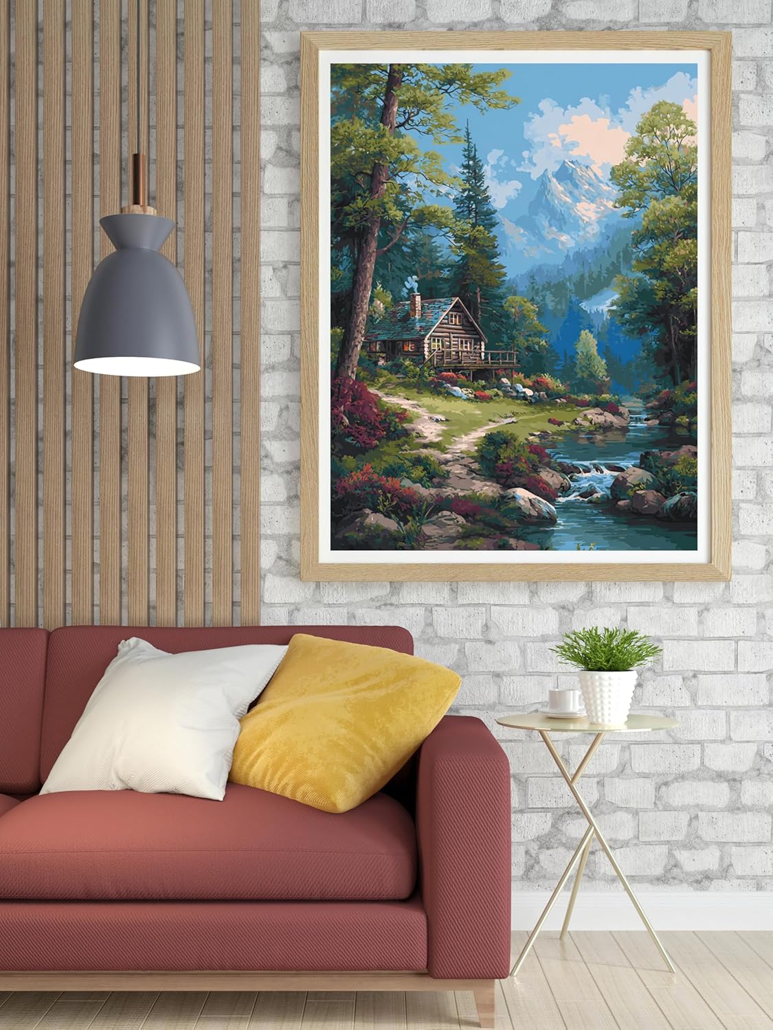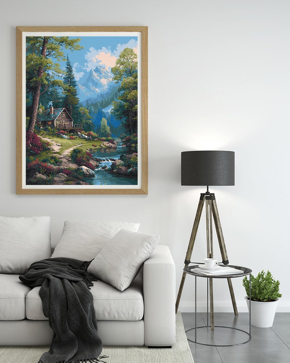 14CT Counted Cross Stitch Kits for Adults Advanced Mountains Lake Printed Stamped Cross Stitch Kits for Adults (Mountain Lake 5)