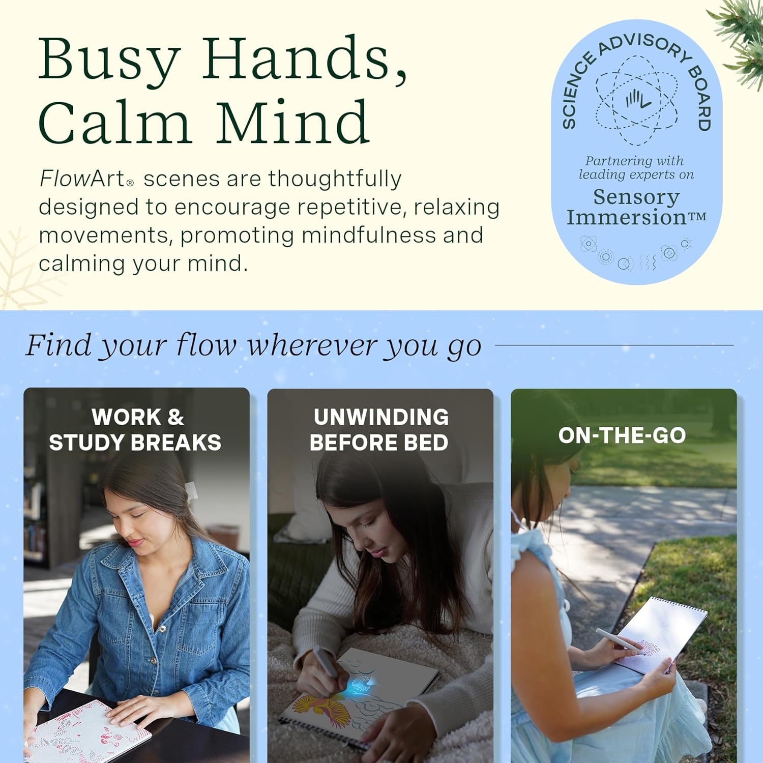 - Bonus FlowArt Activity Pad: Pack includes a bonus activity pad with 8 additional scenes for even more calm whenever you need it. Find your flow during work and study breaks, unwinding before bed, or well-being on-the-go.