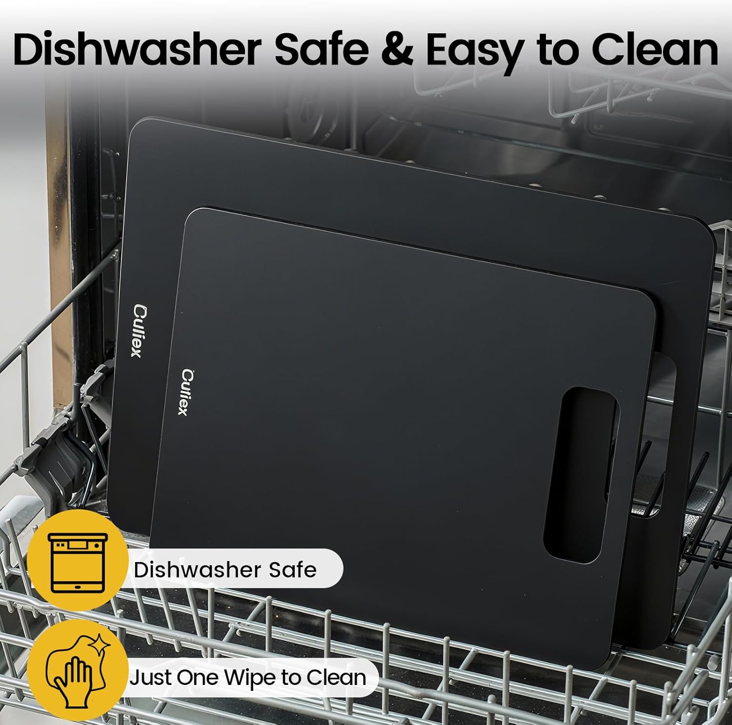 - EASY TO CLEAN & DISHWASHER SAFE: Most residues rinse off easily with water and a gentle wipe. For added convenience, these cutting boards are also dishwasher safe.