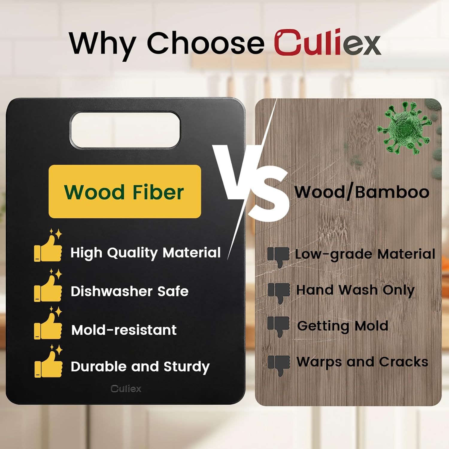 - SAFE MATERIALS FOR YOUR HEALTH: Our composite cutting boards are crafted from BPA-free, non-toxic wood fiber, ensuring your safety and well-being while caring for our planet.