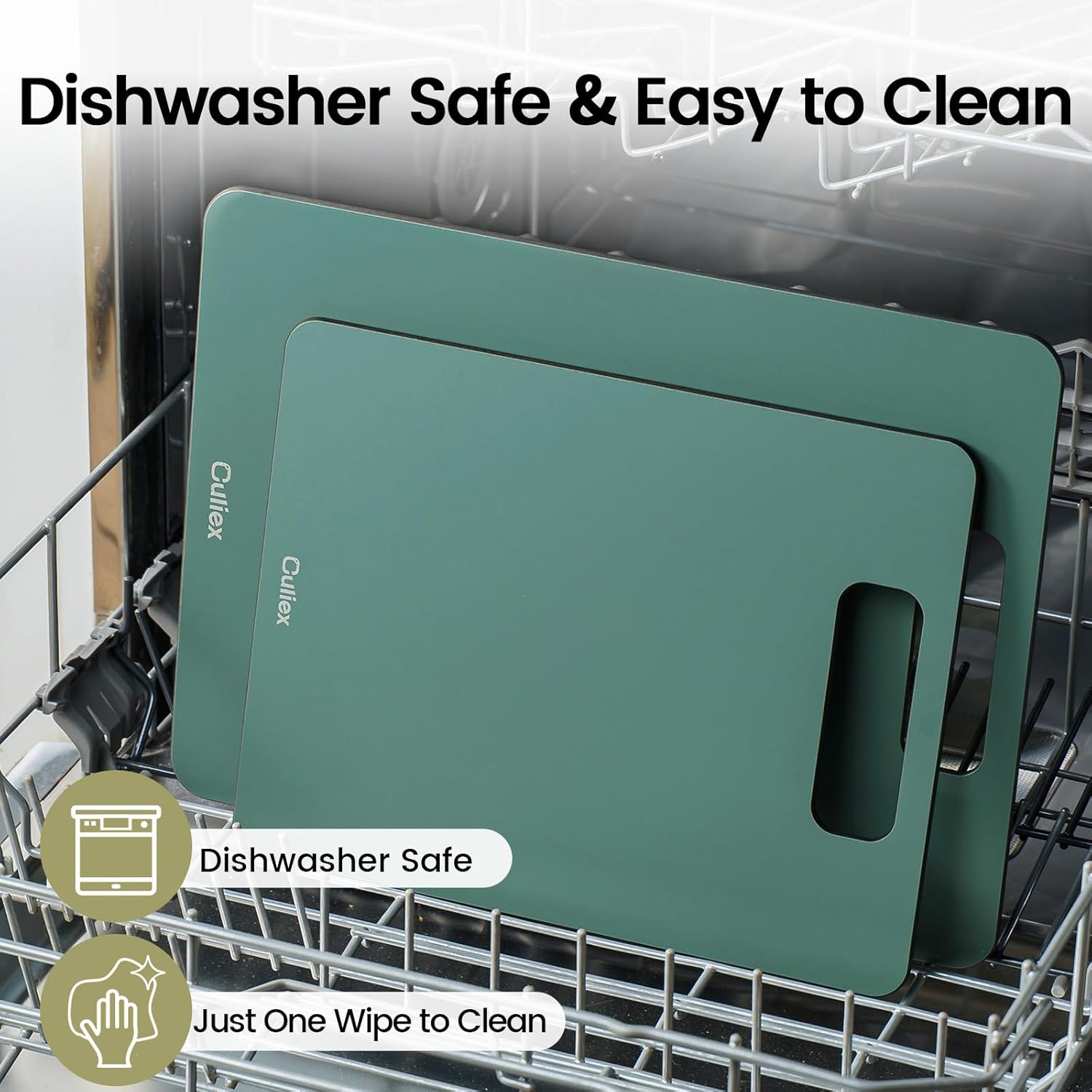 - EASY TO CLEAN & DISHWASHER SAFE: Most residues rinse off easily with water and a gentle wipe. For added convenience, these cutting boards are also dishwasher safe.