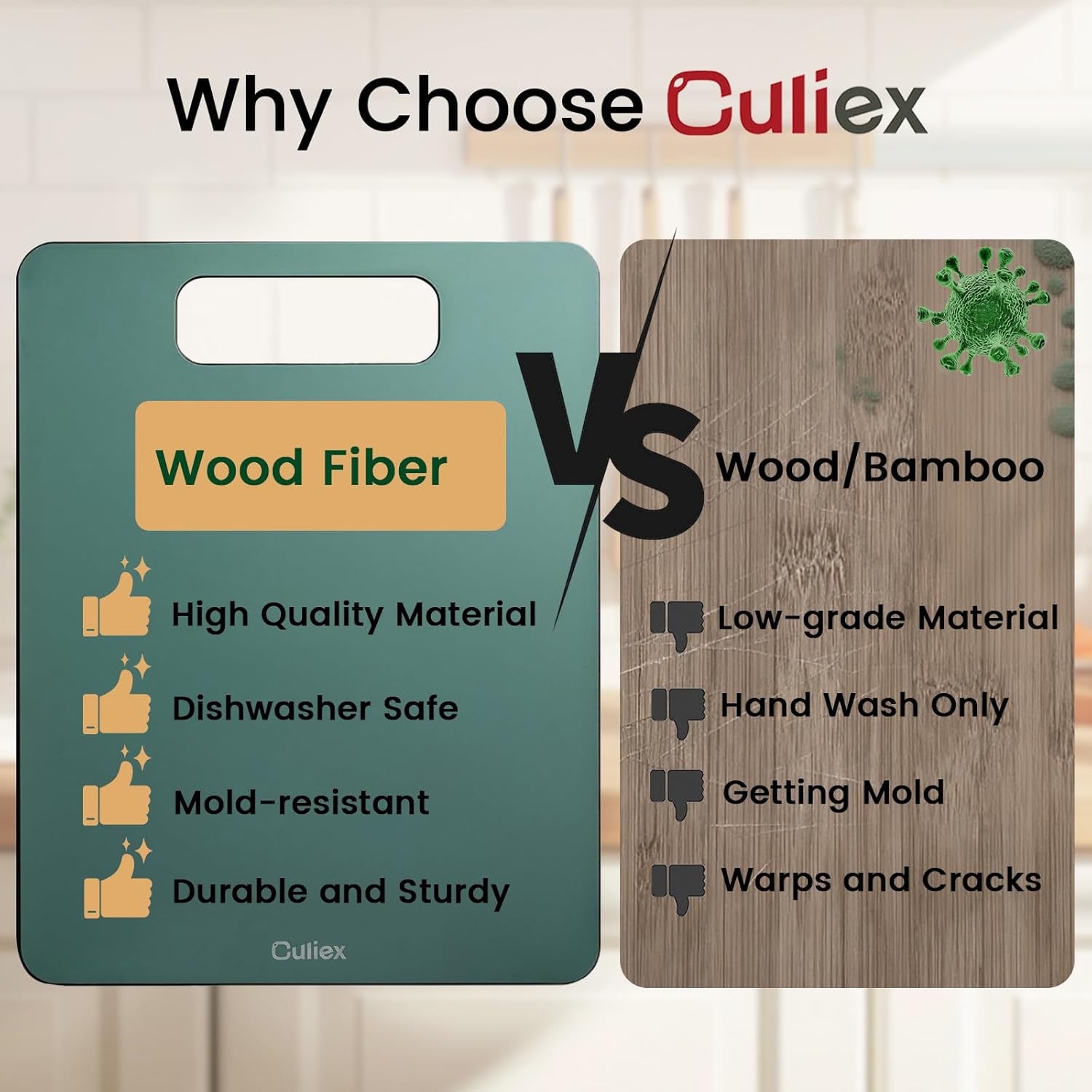 - SAFE MATERIALS FOR YOUR HEALTH: Our composite cutting boards are crafted from BPA-free, non-toxic wood fiber, ensuring your safety and well-being while caring for our planet.