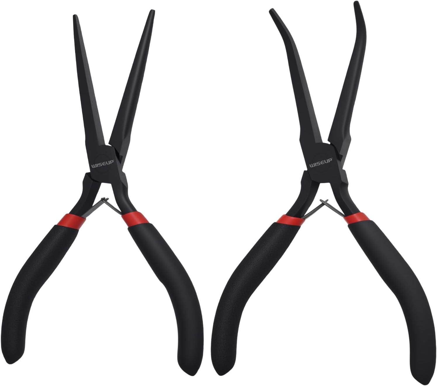 WISEUP 6" Mini Needle Nose Pliers Set,2-Piece Small Long Reach Bent Needle Nose Pliers for Jewelry DIY Craft,Repair & Wire Wrapping