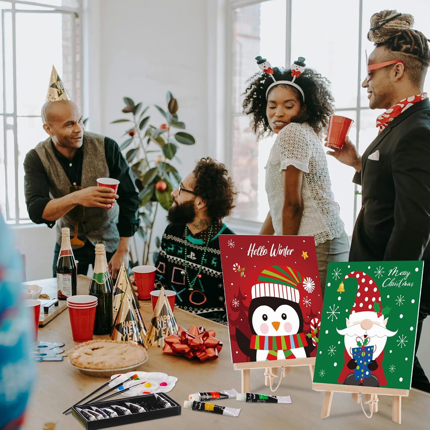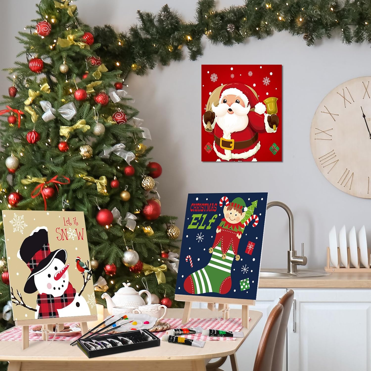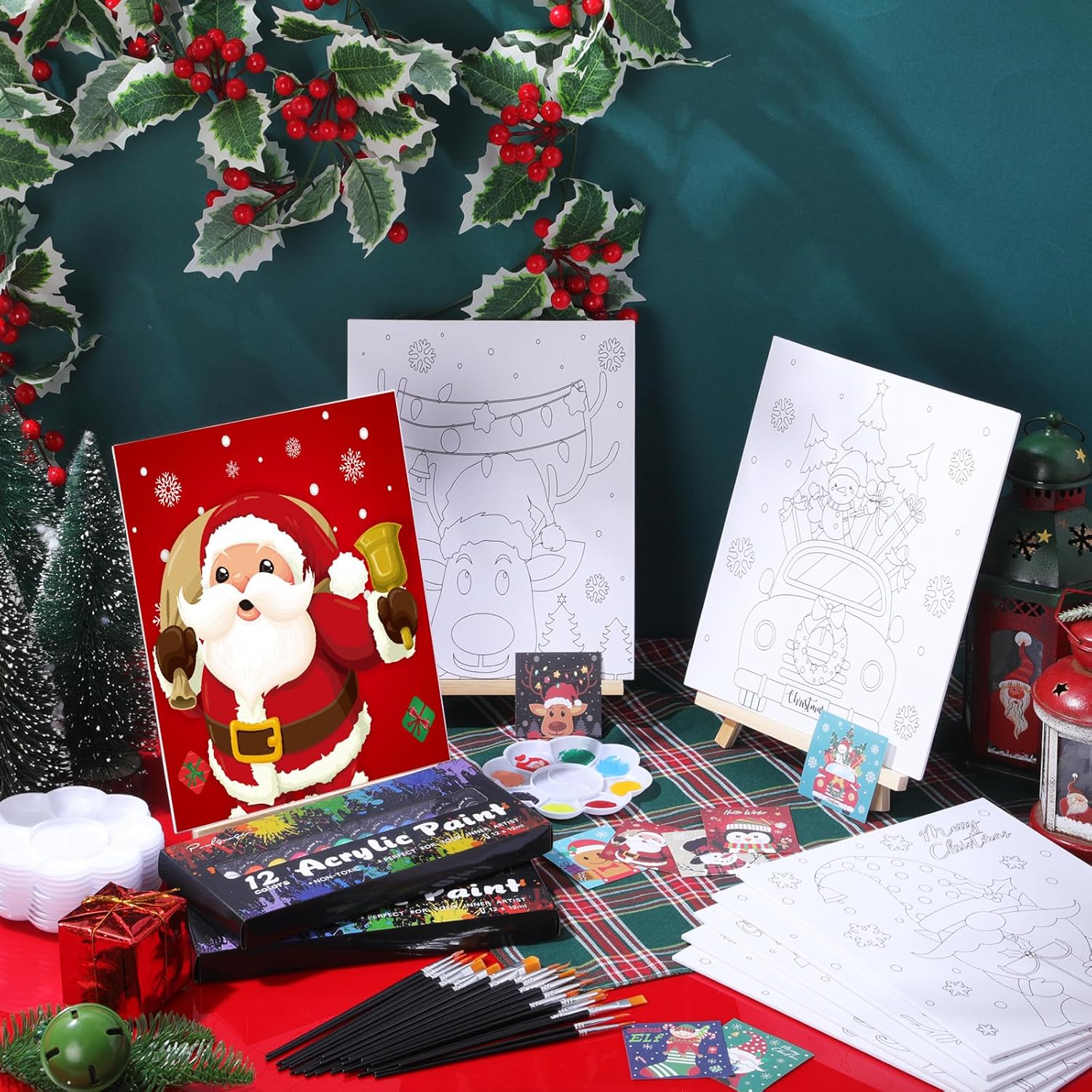 Cholemy 36 Pcs Paint and Sip Kit for Adults 8''x10'' Pre Drawn Canvas for Painting DIY Afro Acrylic Painting Kit Wood Easel Brushes Date Night Bulk for Christmas Party Gifts(Christmas B)