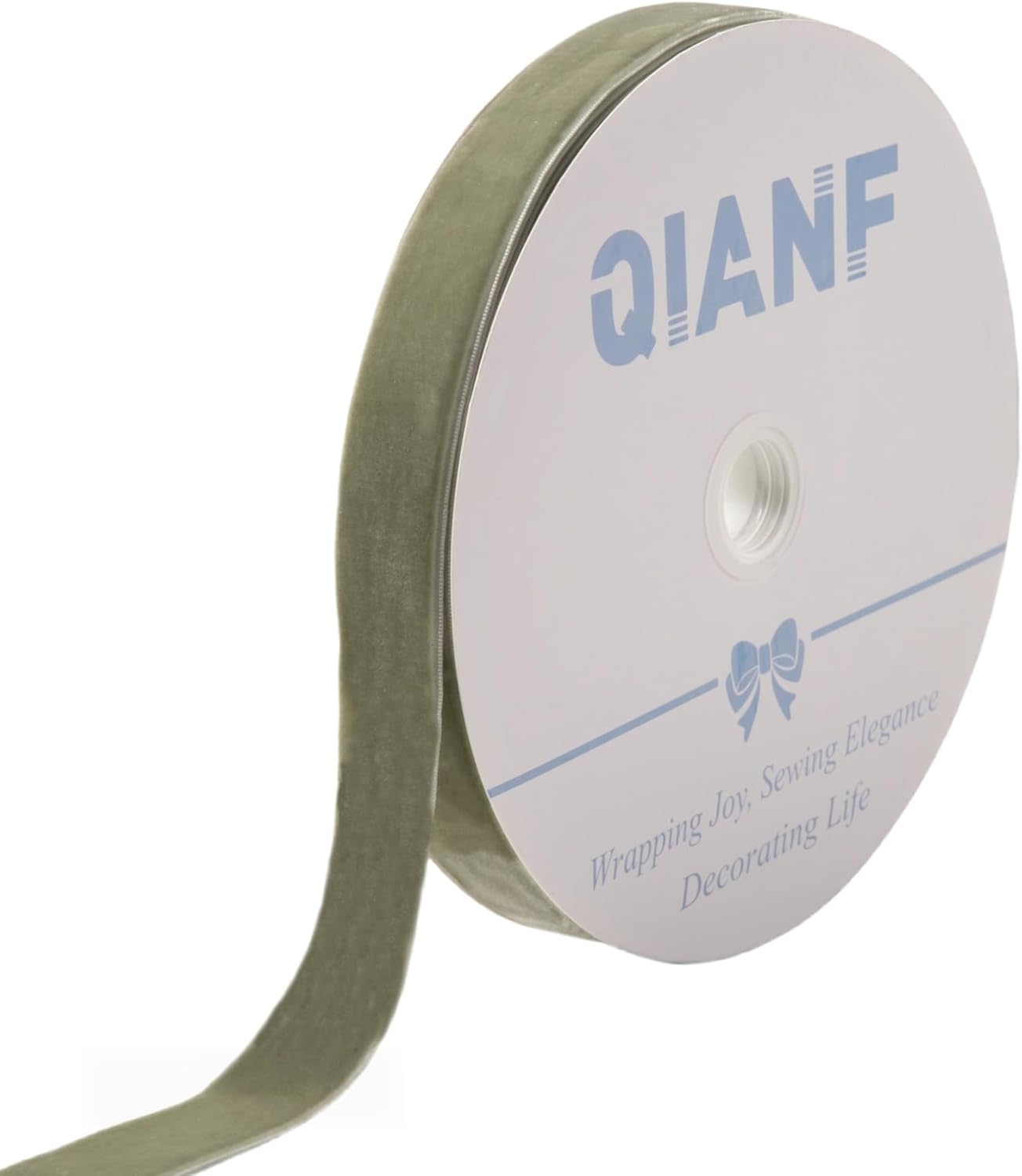 Vintage Sage Green Velvet Ribbon Christmas Ribbon for Gift Wrapping Crafts Christmas Tree Ornaments Garland Decorations, 1 Inch X 25Yd