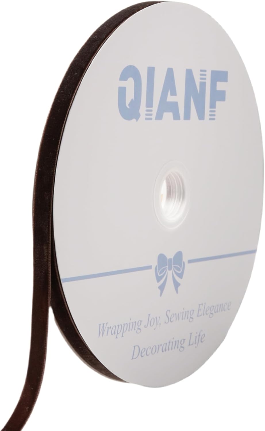 Vintage Brown Velvet Ribbon Chocolate Christmas Ribbon for Gift Wrapping Crafts Christmas Tree Ornaments Garland Decorations, 3/8 Inch X 25Yd