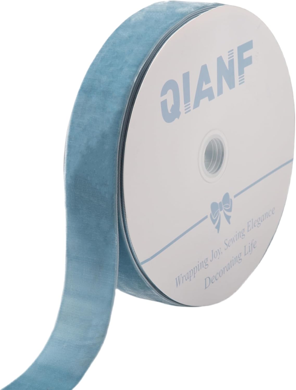Vintage Dusty Blue Velvet Ribbon Christmas Ribbon for Gift Wrapping Crafts Christmas Tree Ornaments Garland Decorations, 1-1/2 Inch X 25Yd