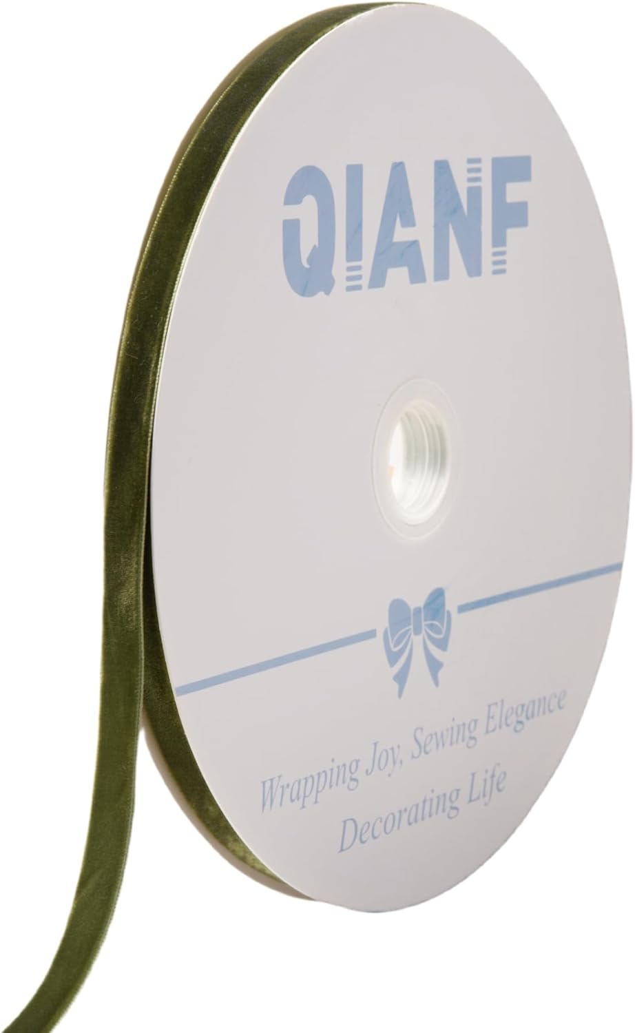 Vintage Moss Green Velvet Ribbon Christmas Ribbon for Gift Wrapping Crafts Christmas Tree Ornaments Garland Decorations, 3/8 Inch X 25Yd