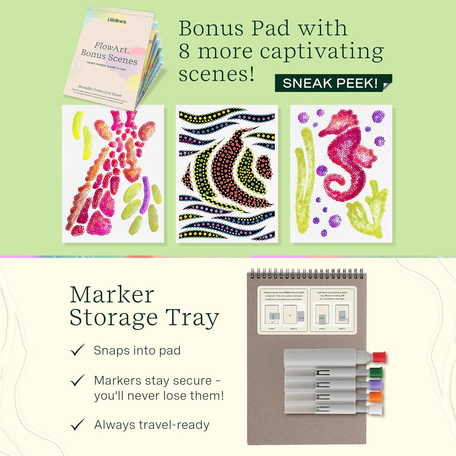 - Bonus FlowArt Activity Pad: Pack includes a bonus activity pad with 8 additional scenes for even more calm whenever you need it. Find your flow during work and study breaks, unwinding before bed, or well-being on-the-go.