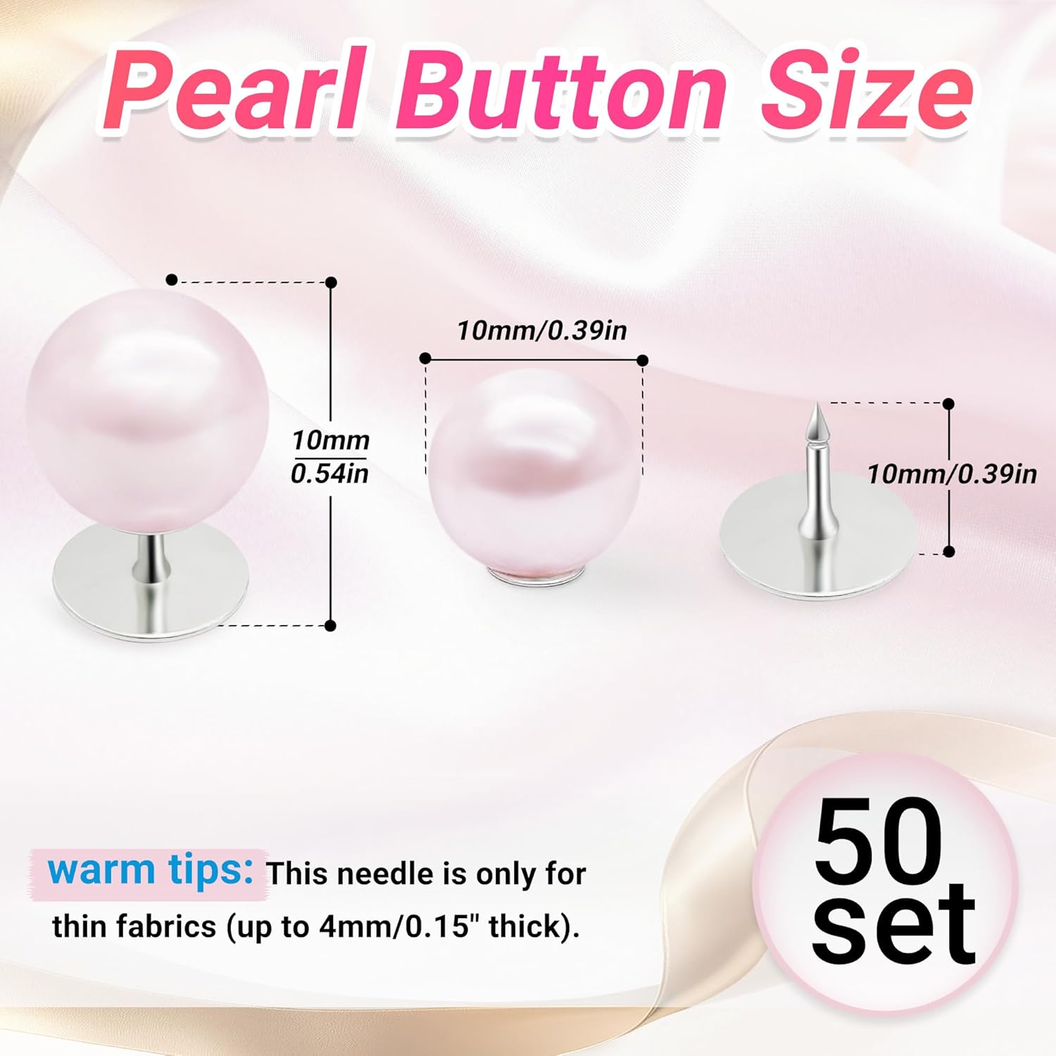 50 Sets Pearl Buttons No Sew Buttons for Clothes, 10mm Pearl Brooch Pins Reusable for Women, Pink Safety Pins for Dresses, Shirts, DIY Crafts, Fashion Decorative Accessories