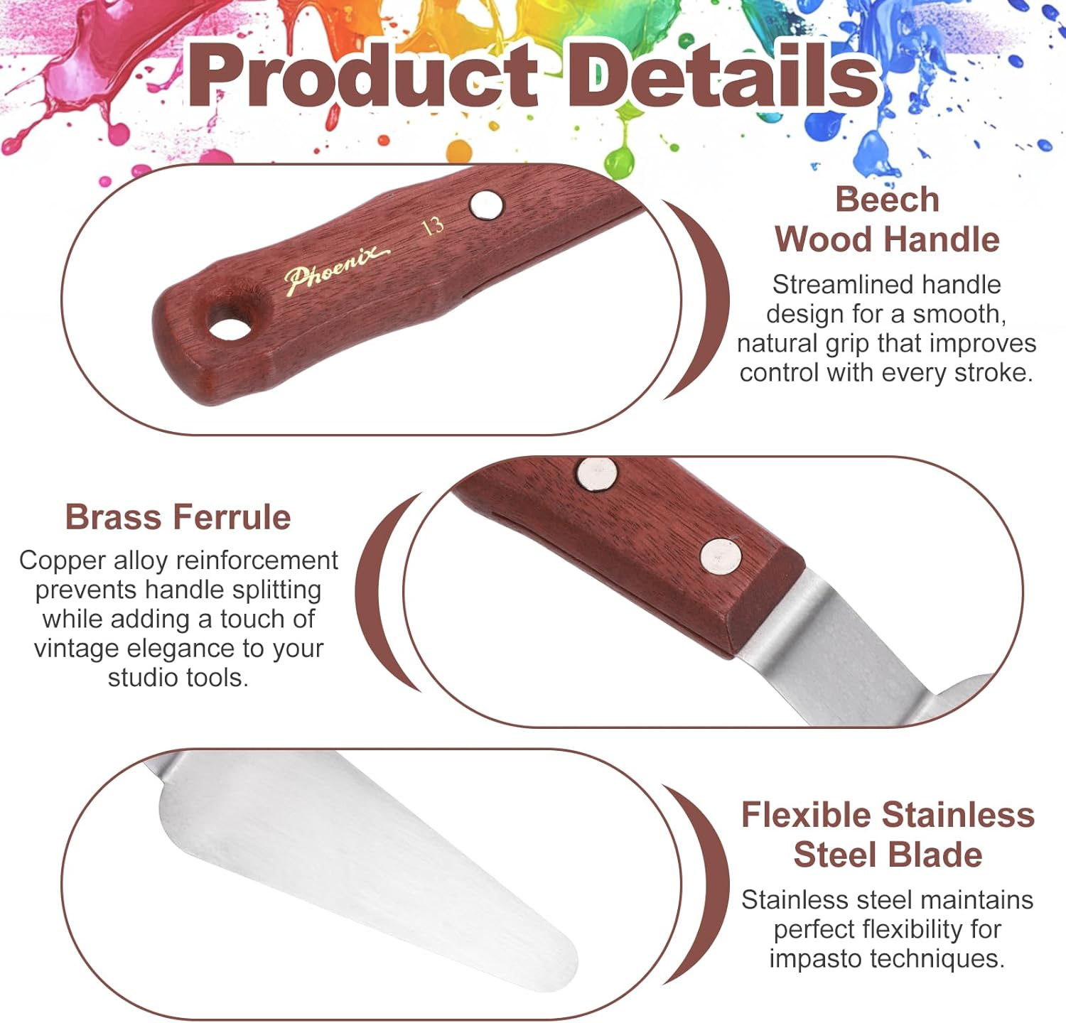 - These versatile painting knives enable techniques like spreading, smoothing, and mixing—perfect for pre-mixing paints or textured effects. Essential for watercolor, oil, canvas, and street art. Painting knives sets suit all artists: professionals, teachers, beginners and enthusiasts seeking precision control.