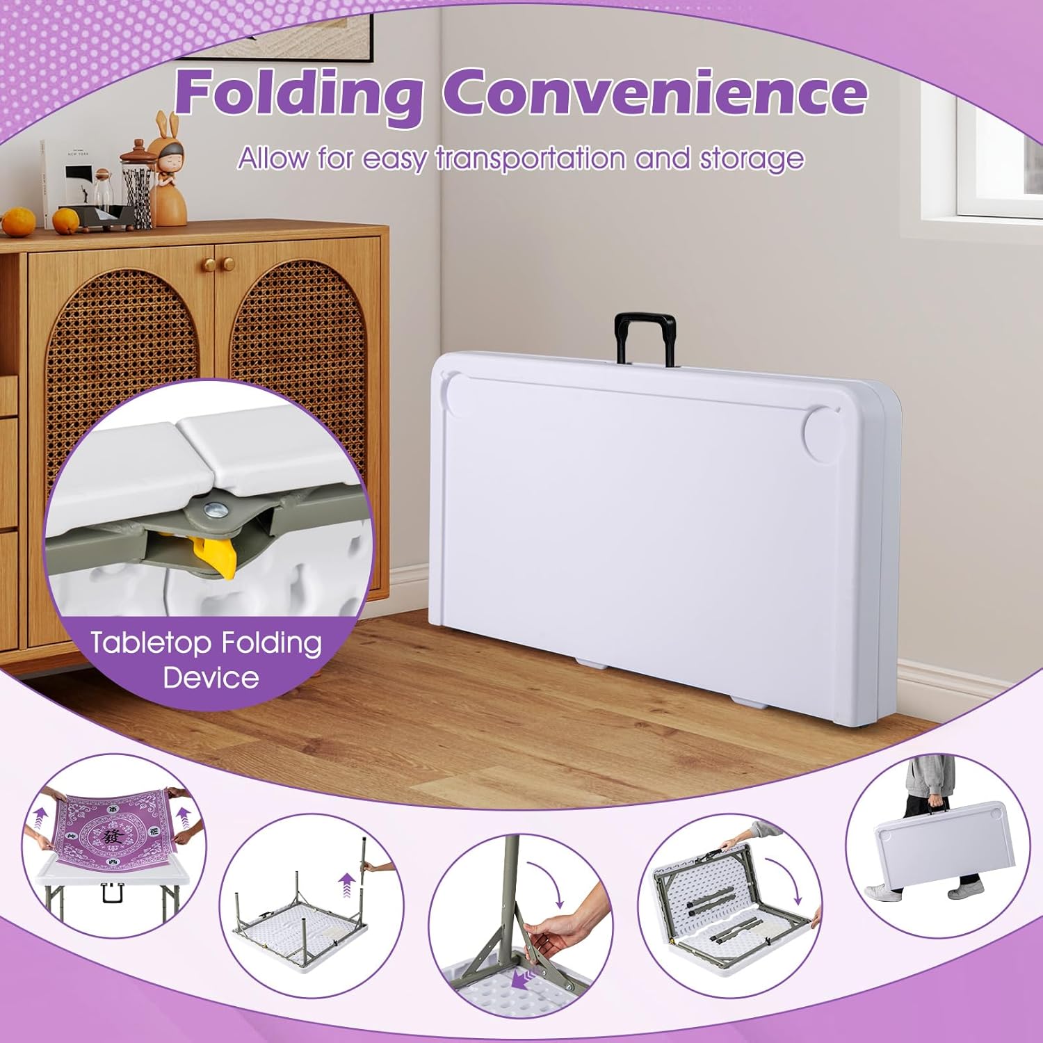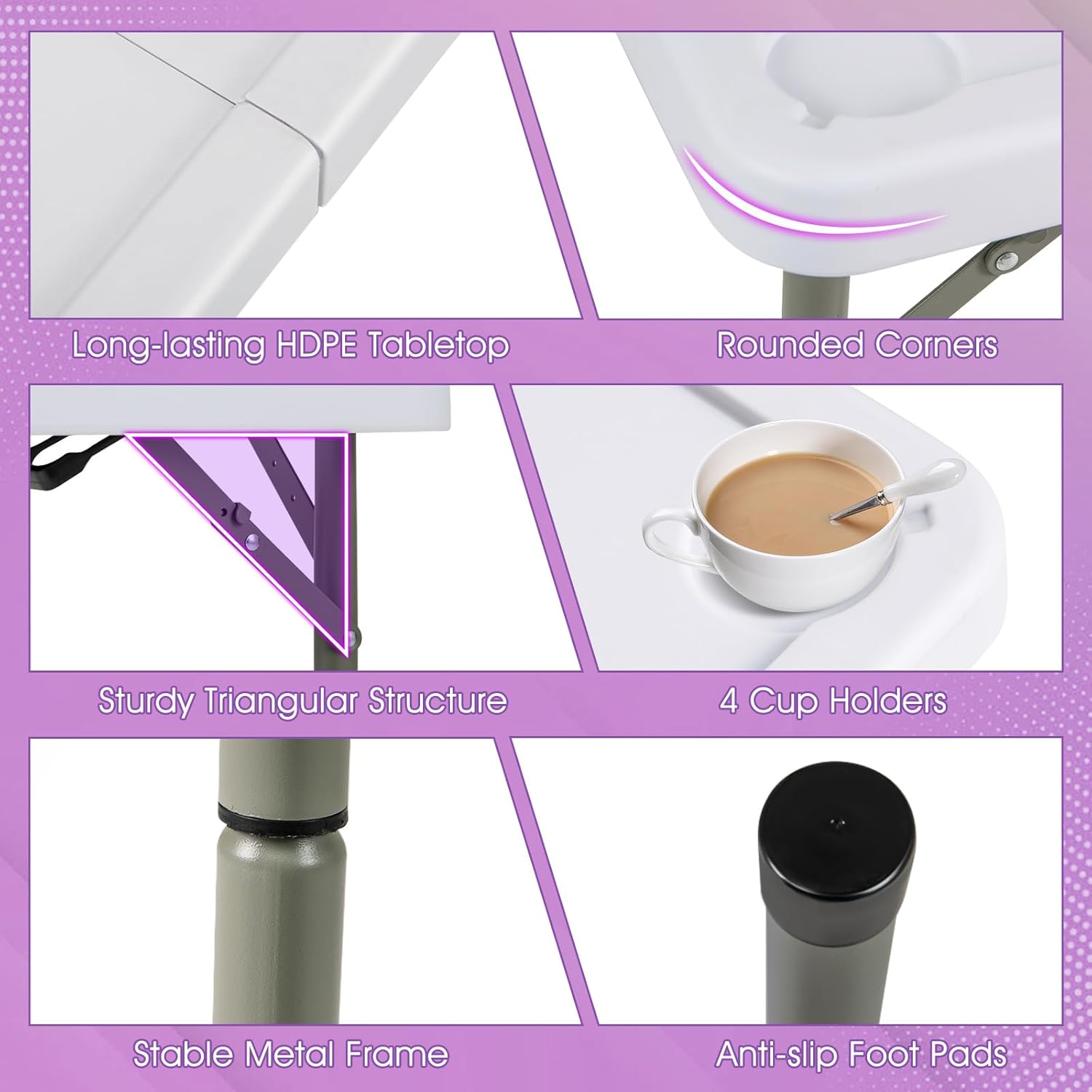 - Sturdy Construction: Built from HDPE, this card table is not only strong and impact-resistant, but also lightweight, waterproof, and easy to clean. Supported by a sturdy metal frame with a reinforced triangular structure, it can hold up to 180 lbs. Anti-slip foot pads ensure it stays steady on any surface.