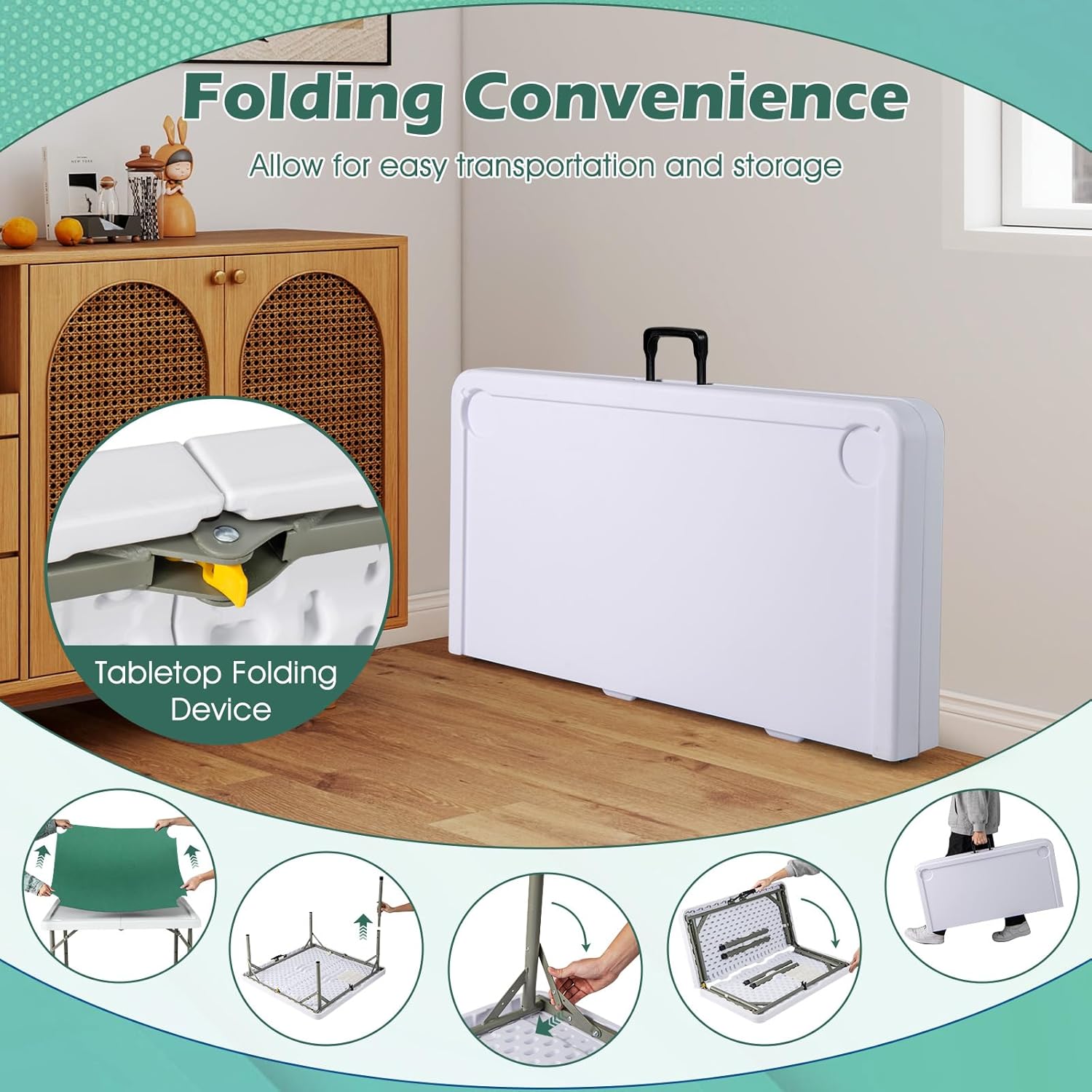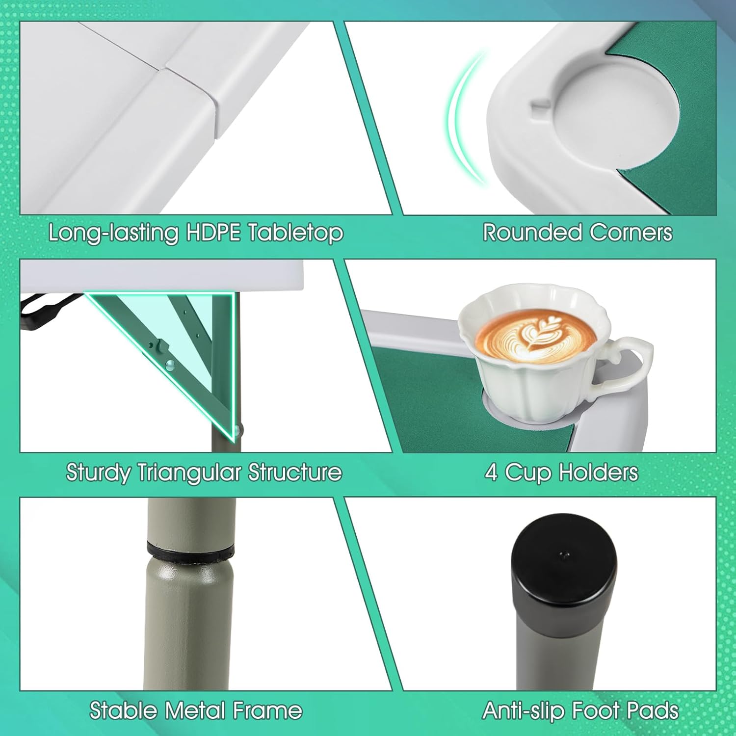 - Sturdy Construction: Built from HDPE, this card table is not only strong and impact-resistant, but also lightweight, waterproof, and easy to clean. Supported by a sturdy metal frame with a reinforced triangular structure, it can hold up to 180 lbs. Anti-slip foot pads ensure it stays steady on any surface.