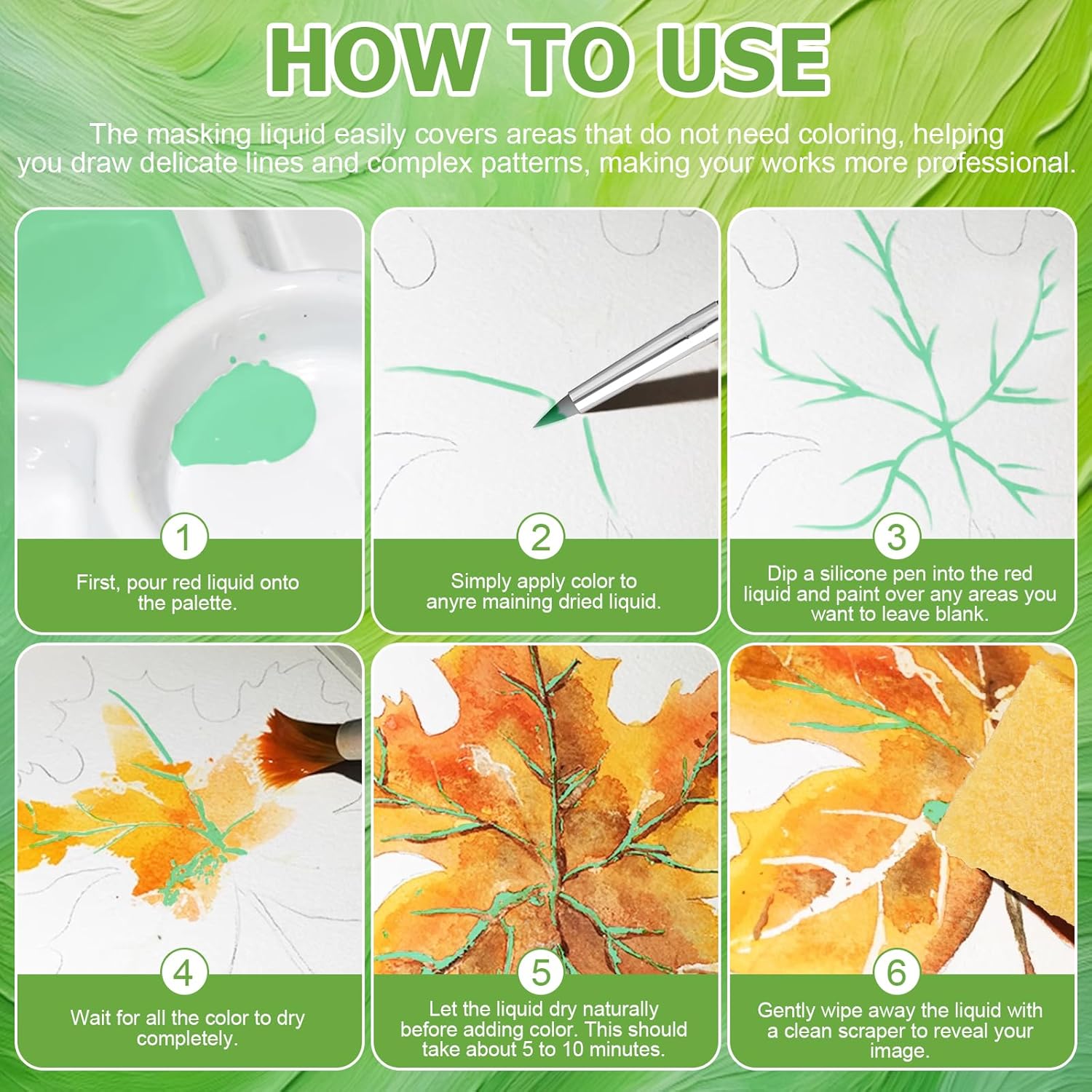 - Masking Fluid For Watercolor Painting: The brilliant green color eliminates the guesswork. See your masking design come to life as you apply it, ensuring perfect placement every time.