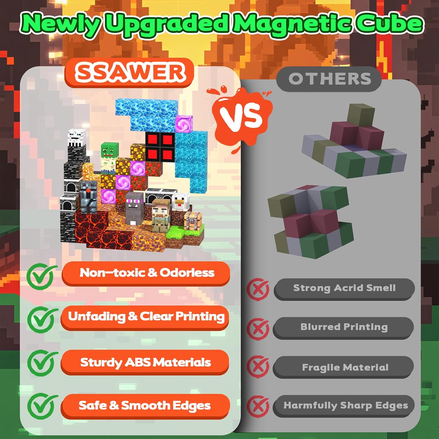 - 【Premium Quality Material】Meet US toy standard and safety test approved. Our magnetic building blocks are made of durable ABS plastic, embedded with 8 magnetic contact points to enhance magnetic force, perfect for kids of ages 3 4 5 6 7 8 -12 to easily stick cubes together and build sturdy structures.