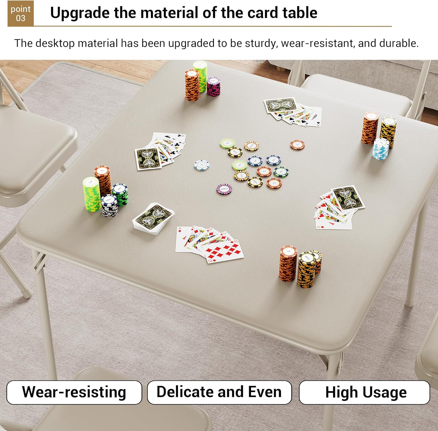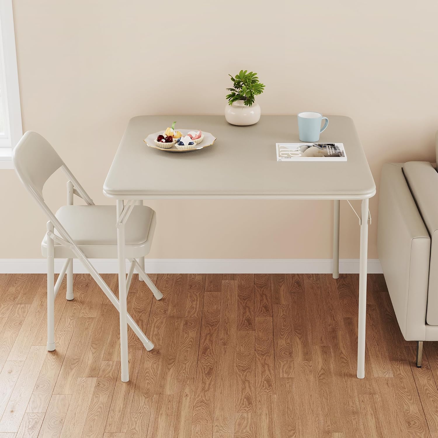 Folding Card Table, 34 Inch Portable Square Game Table with Collapsible Legs, Multifunctional Foladable Table with PU Padded Tabletop for Home, Parties, Picnics, Games, 1 Piece, Beige
