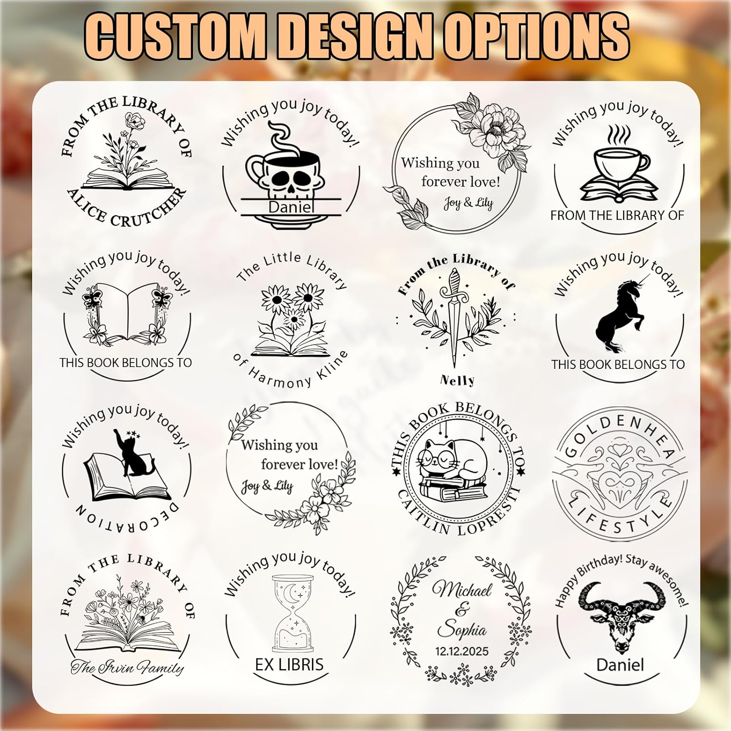 - 【Personalized Embosser Are So Easy】- Step 1: Choose a Book Embosser or Self Inking Stamp---> Step 2: Customize the text at the top and bottom of the input ---> Step 3: Options: Expedited Customization | Foil Stickers | Gift Box Packaging